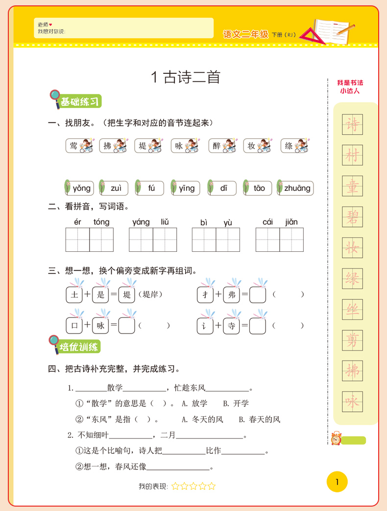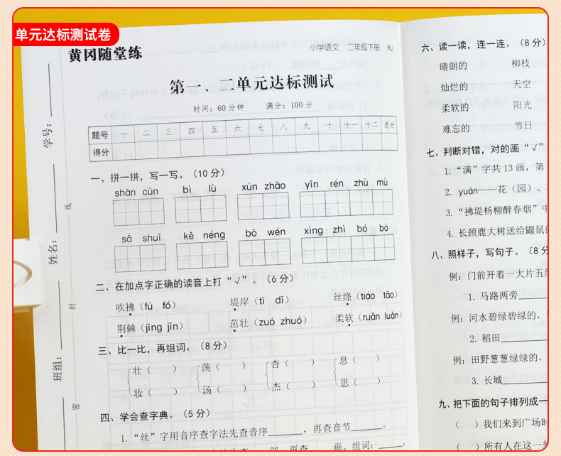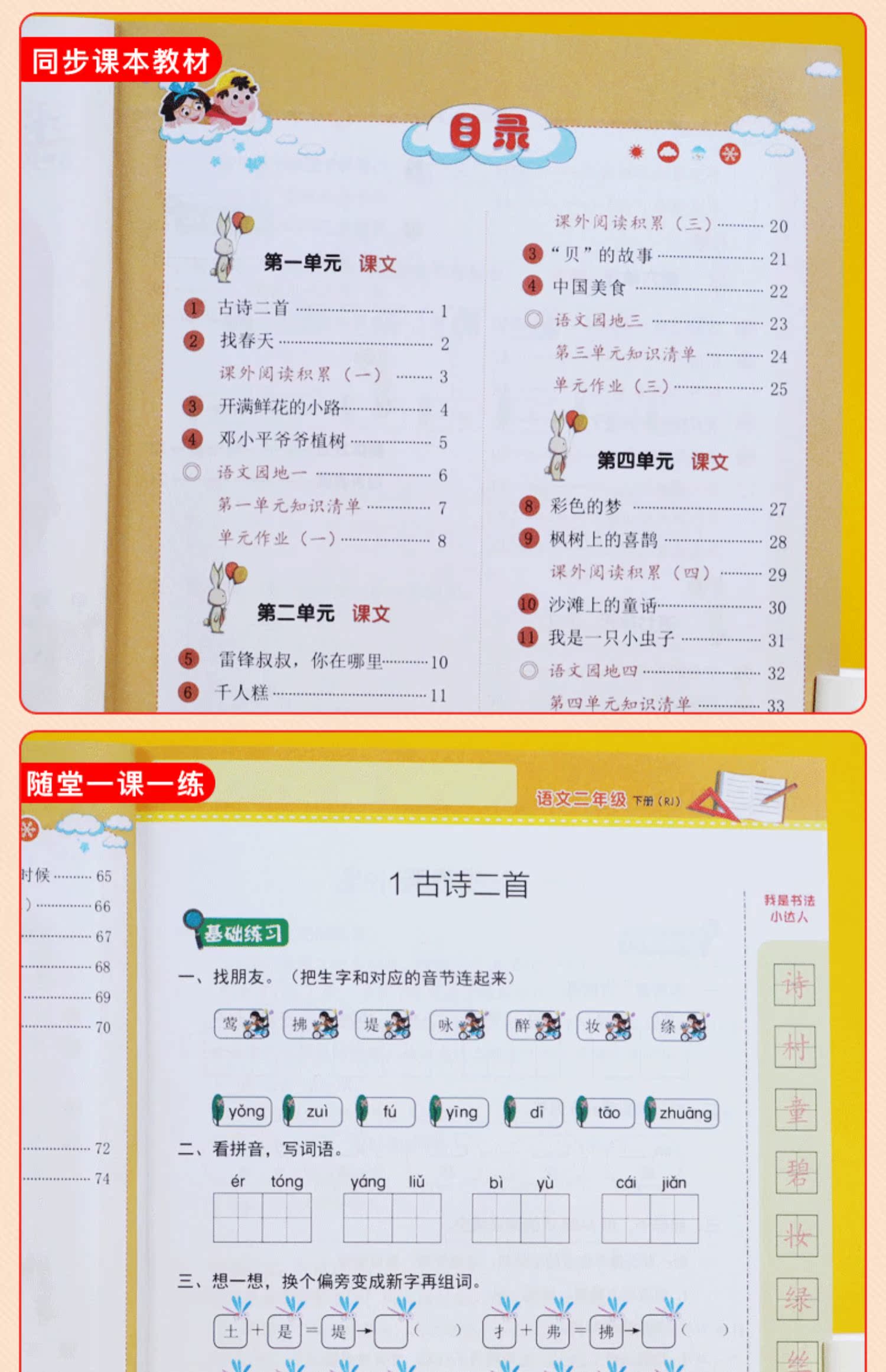 二年级下册语文数学随堂练,一课一练同步训练更加加深小学生课后的学习基础!!人教版新版黄冈出品~~让小学生赢在起跑线上,为你的孩子学出满100分!
