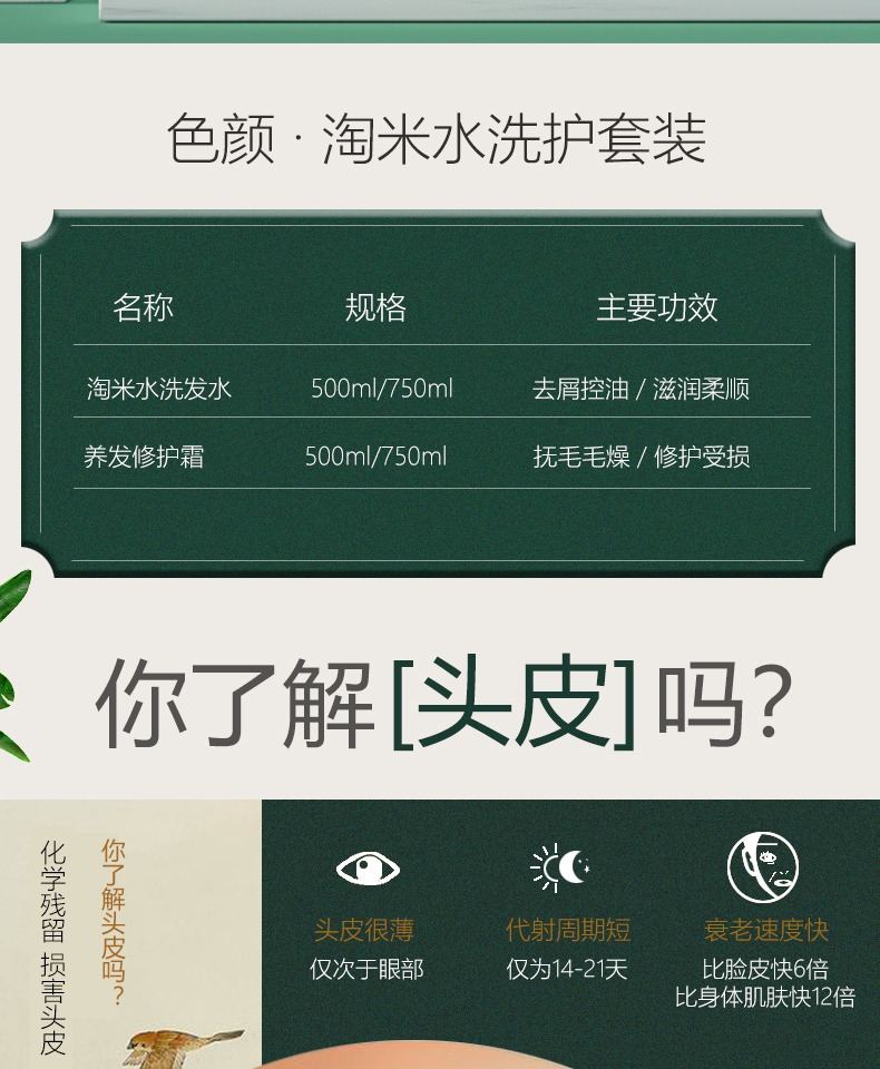 色颜淘米水洗护套装,养头皮,去屑控油,滋润柔顺,抚毛毛躁,修复受损,萃取植物精华,让秀发柔顺光泽!【赠运费险】