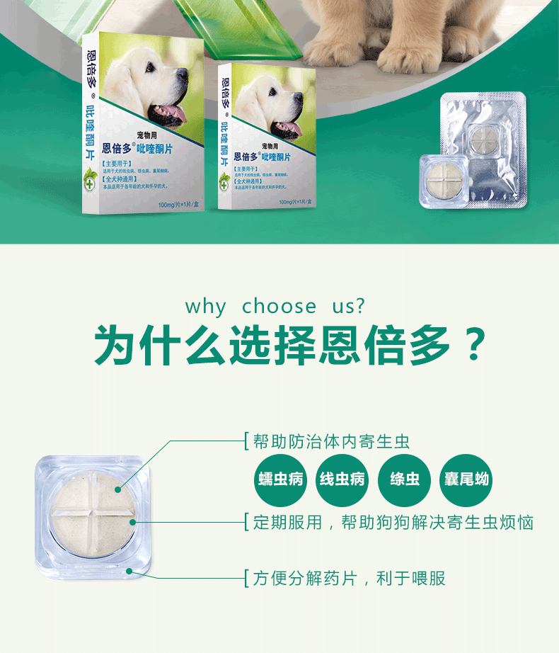 【买一送一发2粒】宠物用品驱虫,执证兽药天猫店,GMP制药认证,农业部正规批文,有效祛除线虫、绦虫、蛔虫和蠕虫等肠道体内寄生虫,1片可驱22斤狗狗体重使用。