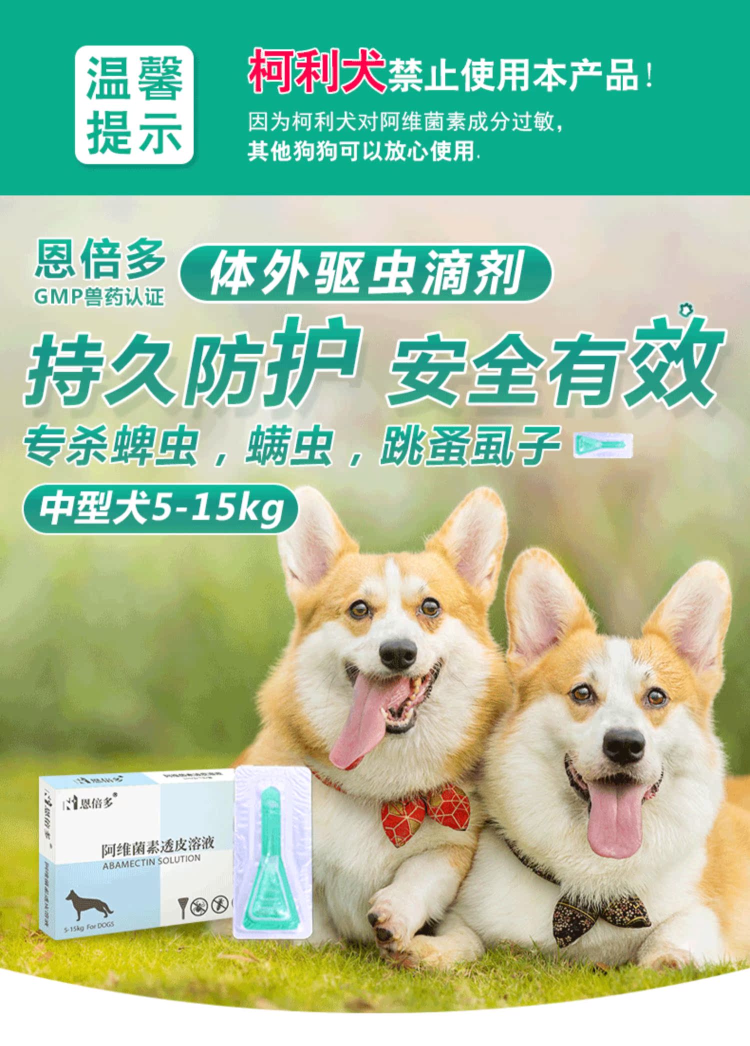 【拍下直接发2支!多买多送!】宠物用品驱虫,执证兽药天猫店,GMP制药认证,中型犬适用于5-15Kg非柯利犬使用,每月一支,长效持久
