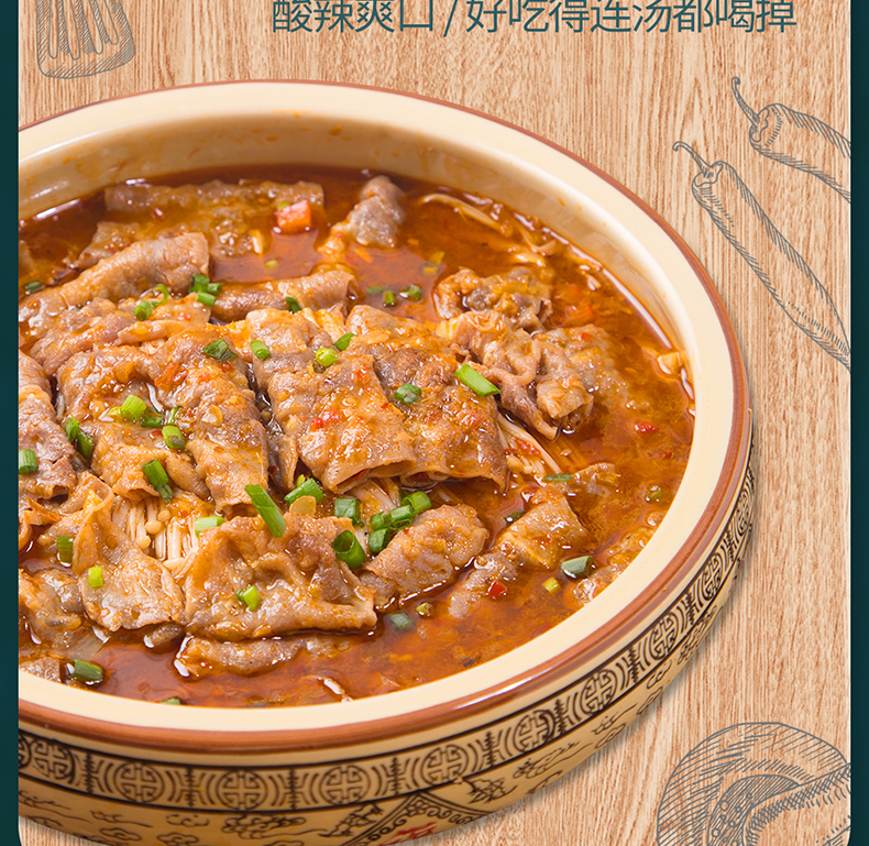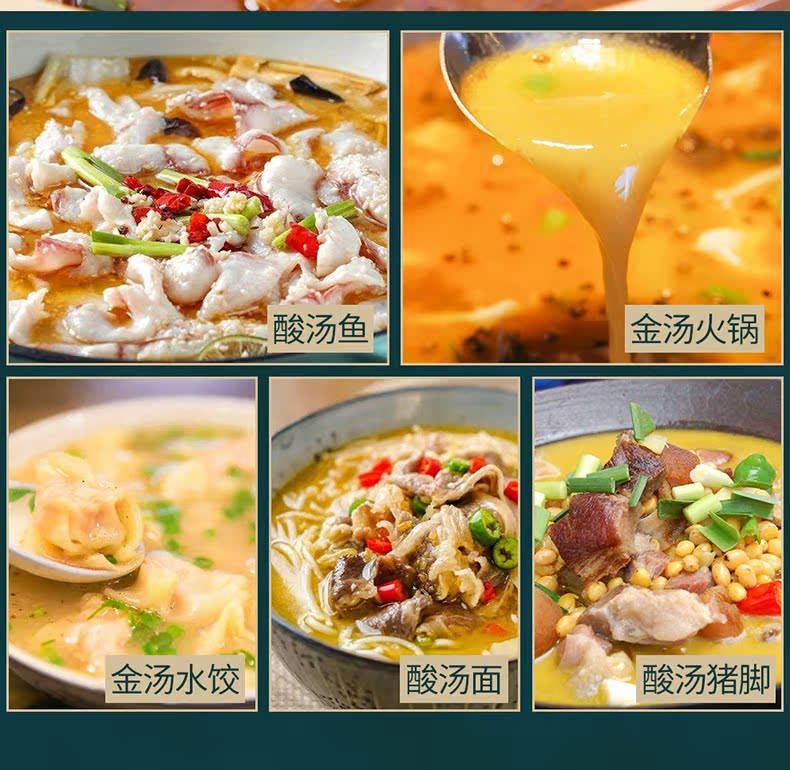 酸辣金汤调料,汤鲜、味足、料浓,无色素、无香精、好原料,观其色,闻其香,尝其味,酸辣爽口,好吃的连汤都喝掉