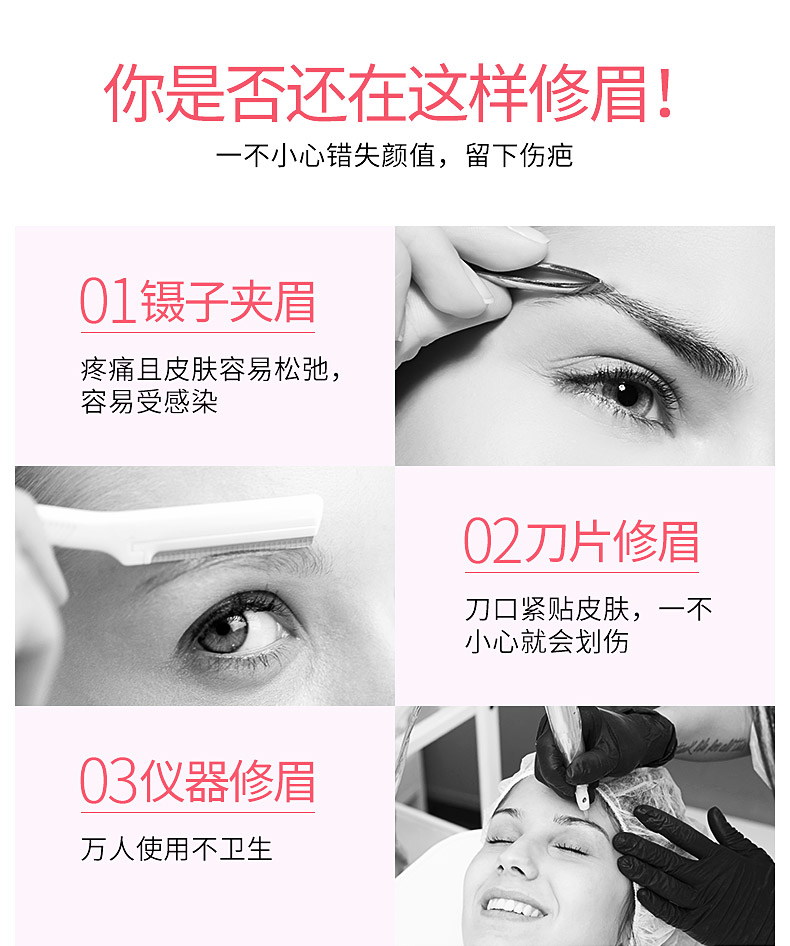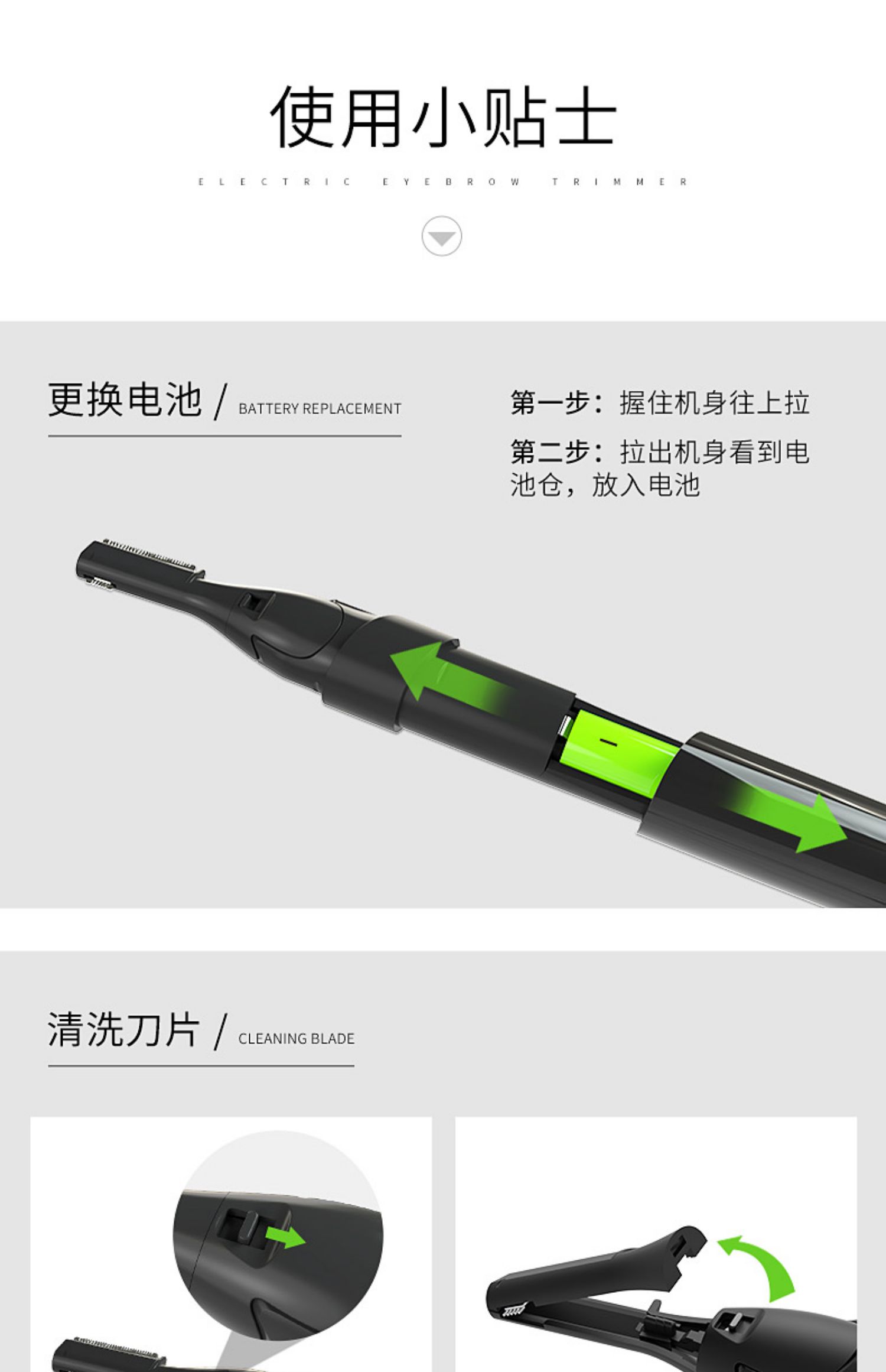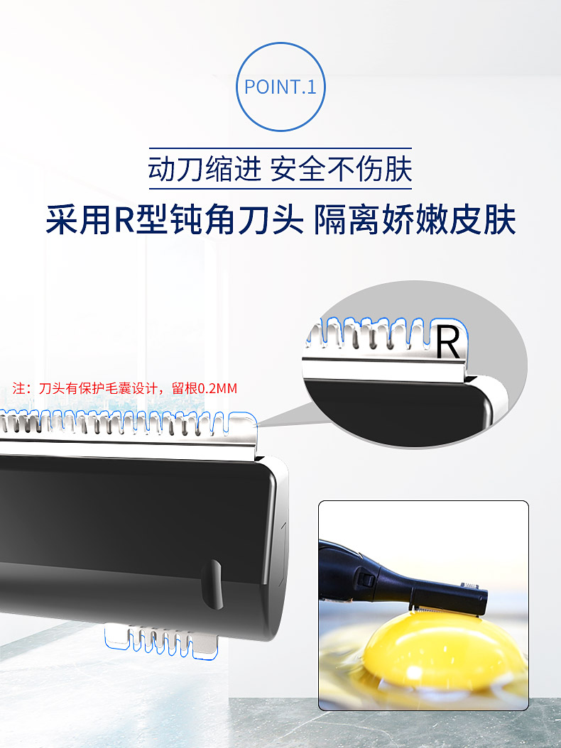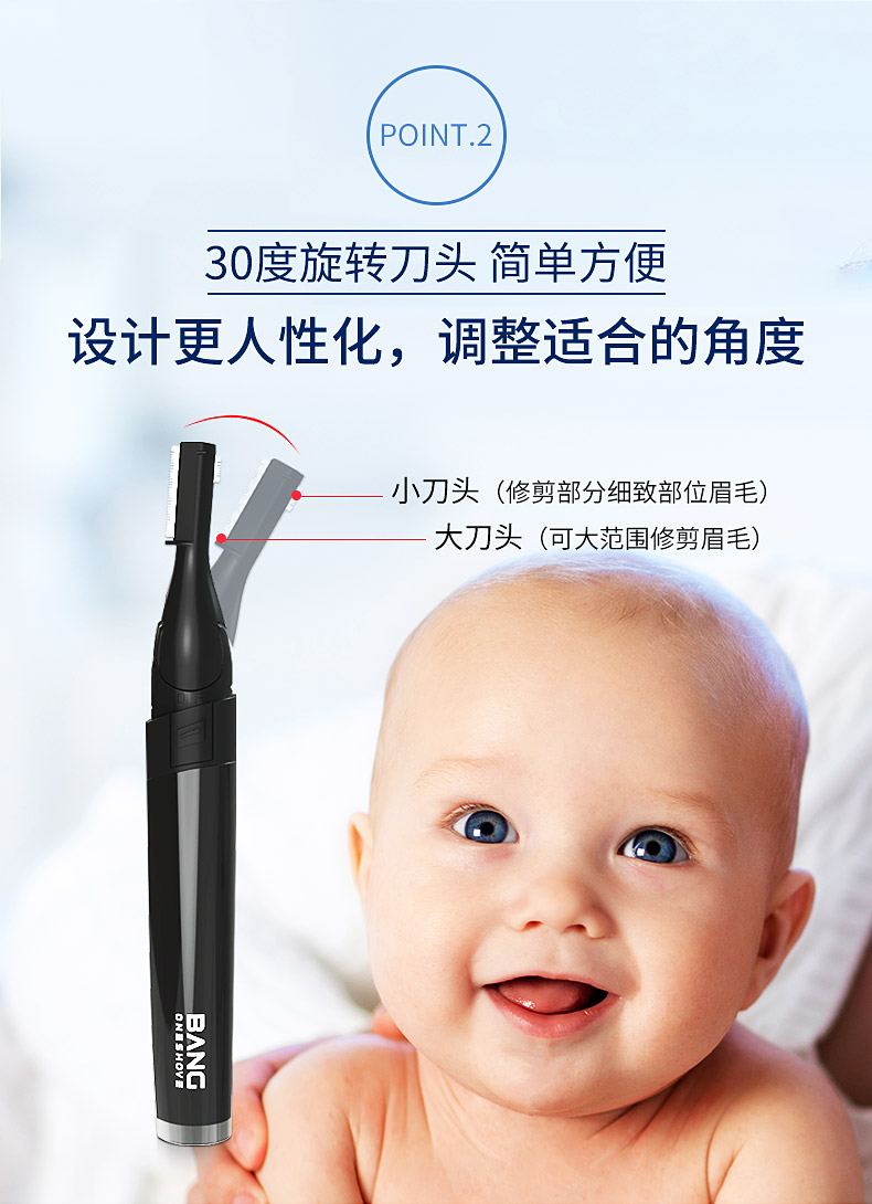 采用R型钝角刀头,安全不伤肤,刀头可30°旋转,精致修眉+全身剃毛,还可以给宝宝剃发,一机搞定,精致小巧随身带,爱美女神必备哟!【赠运费险】