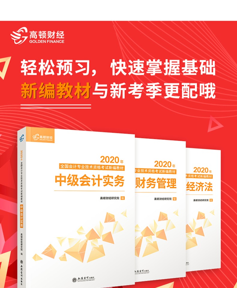 高顿财经新版2020年中级会计职称新编官方教材,经济法会计实务财务管理全套3本,含精讲精练网课真题卷题库新纲解读通关攻略