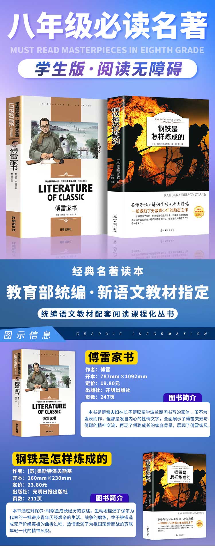 世界经典文学名著,钢铁是怎样炼成的,傅雷家书全两册,16开大版本,印刷清晰,全译本,完整无删减。学校指定,人教版八年级下册语文课外读物,中小学生新课标必读丛书,收藏阅读必备,赠2本考点专练。