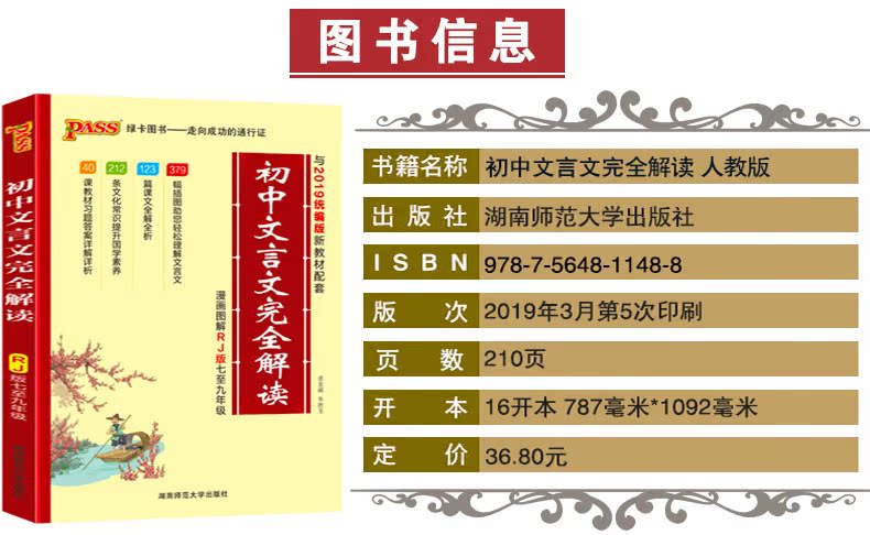 【赠送1本知识册+1本笔记本+4支笔芯】2020绿卡初中文言文,阅读训练七八九年级文言文,全解一本通教材译注及赏析中考教辅资料书,背景导读,文言译注,评点赏析,写法举要,初中生必备!