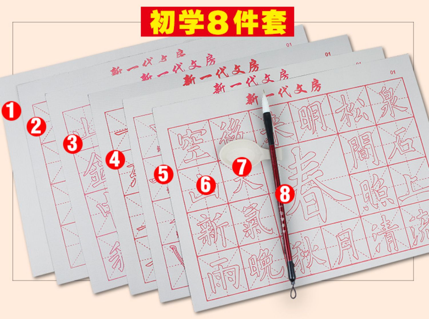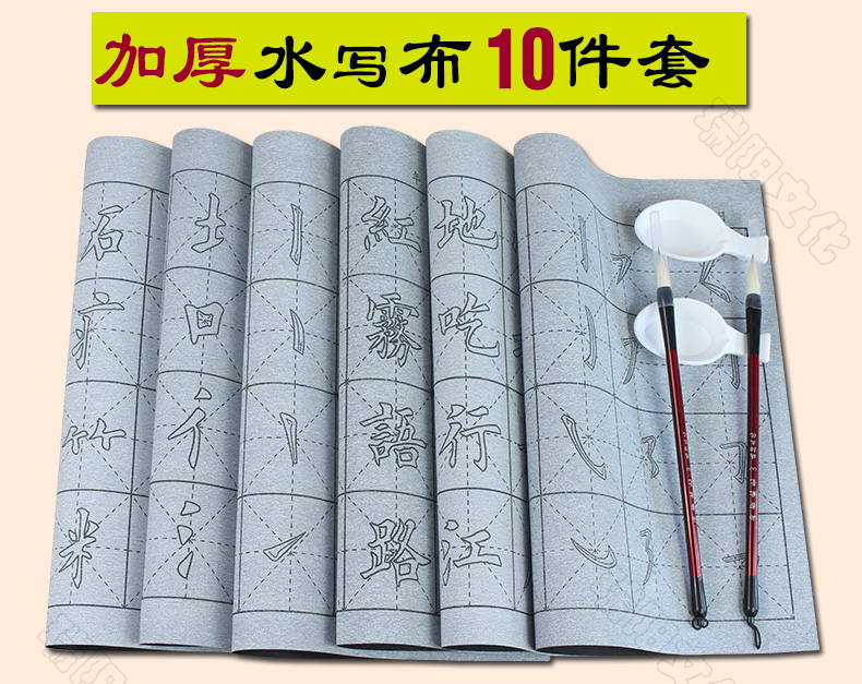 毛笔字初学者入门楷书法练习描红水写字帖,初学5件套!内含多种不同功能的水写布,节省费用,保护环境,外赠送升级版毛笔和多功能水碟!