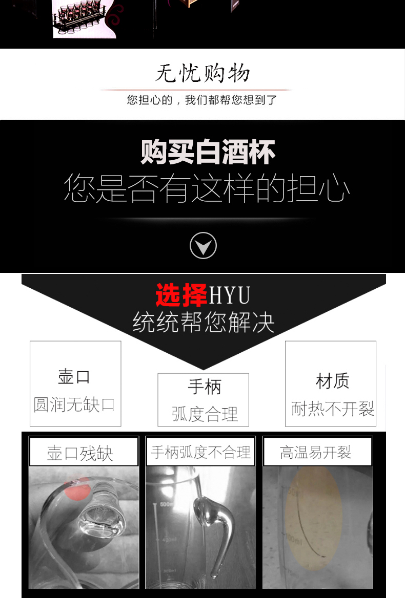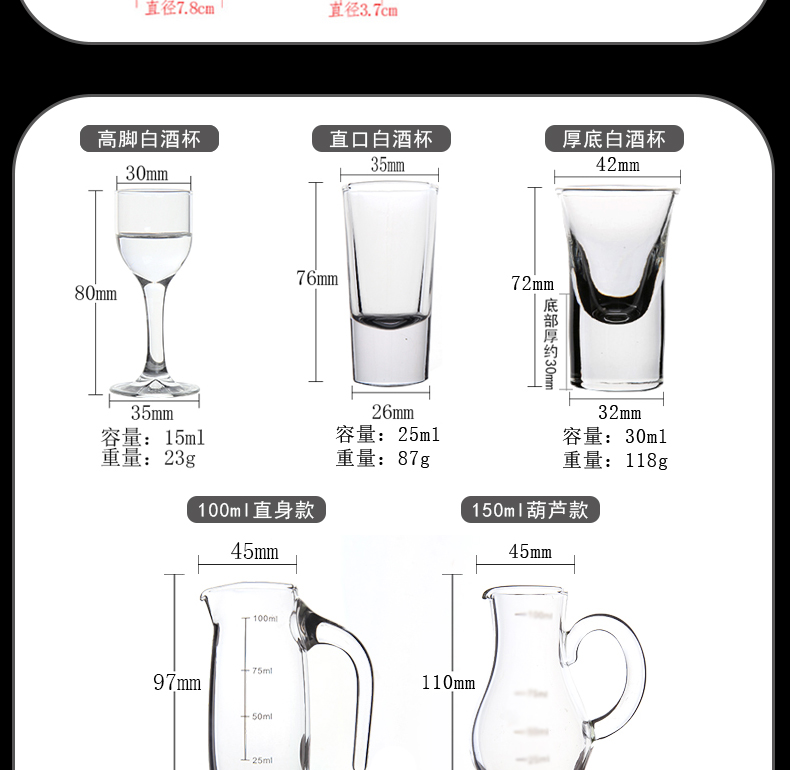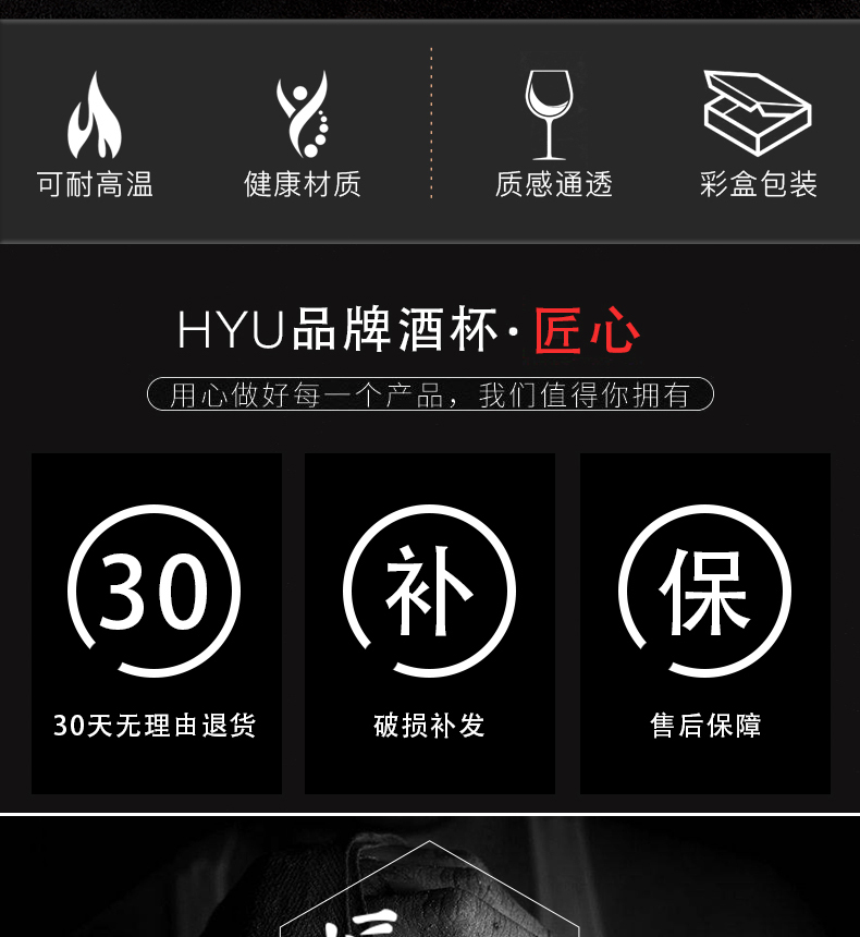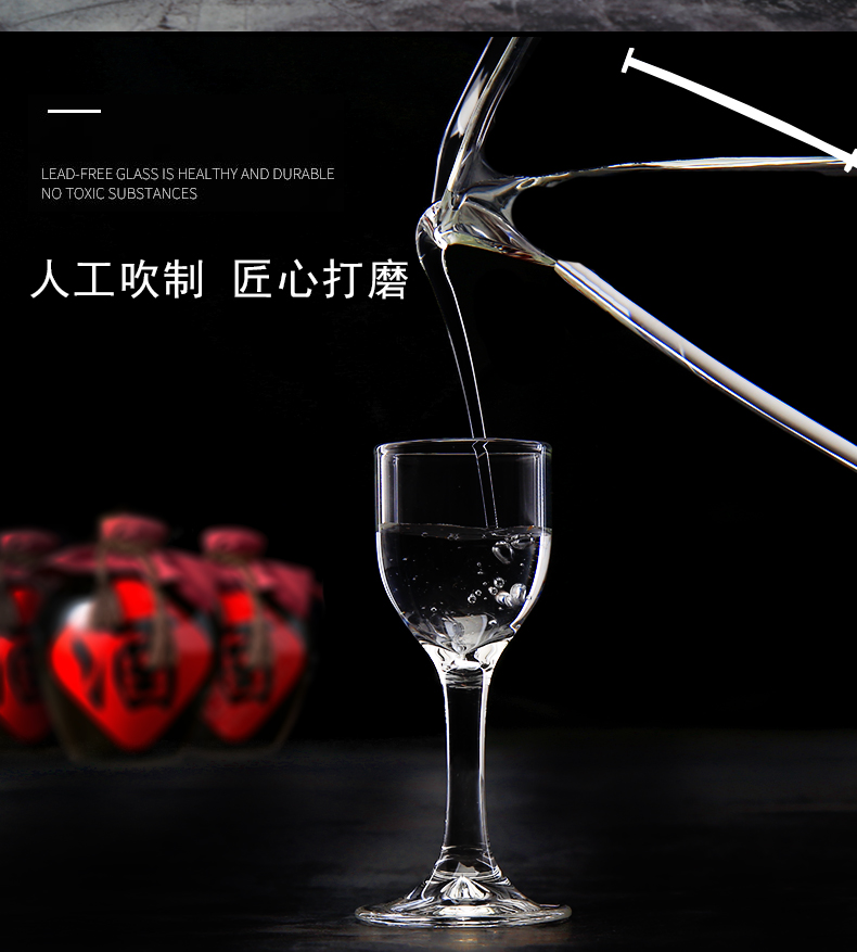 优质无铅玻璃,底部加厚。晶莹剔透,健康安全,冷切口平滑处理,精致美观,大气简约!居家套装,白酒专用!