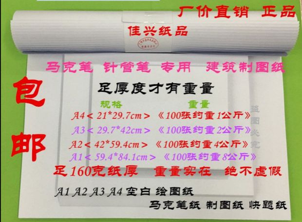 【买就送铅笔橡皮记号笔】光滑平挺,质地紧密、经反复使用而不破损,耐机器高温而不起皱卡纸、不起泡、不脆裂;耐刮擦、不起毛、不破纸,使改图轻而易举,制图纸纸张性能卓越稳定,效果突出,制图效率高!