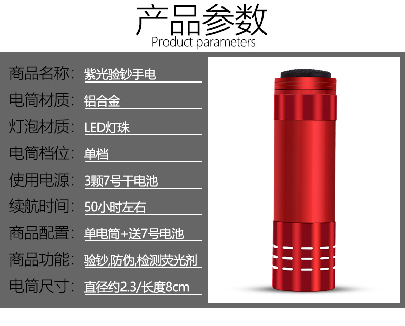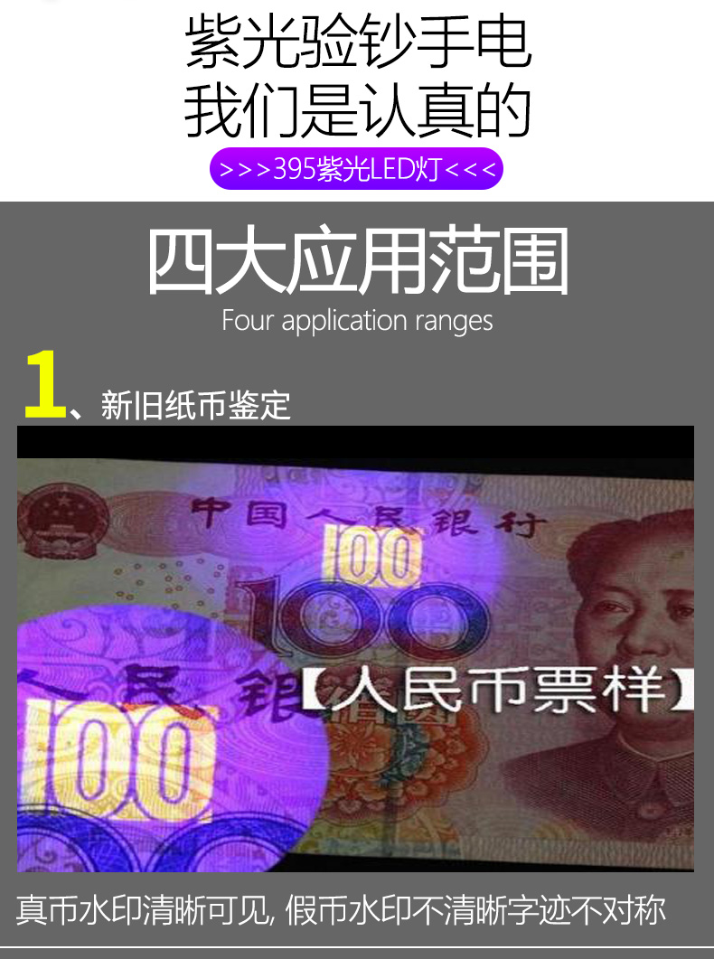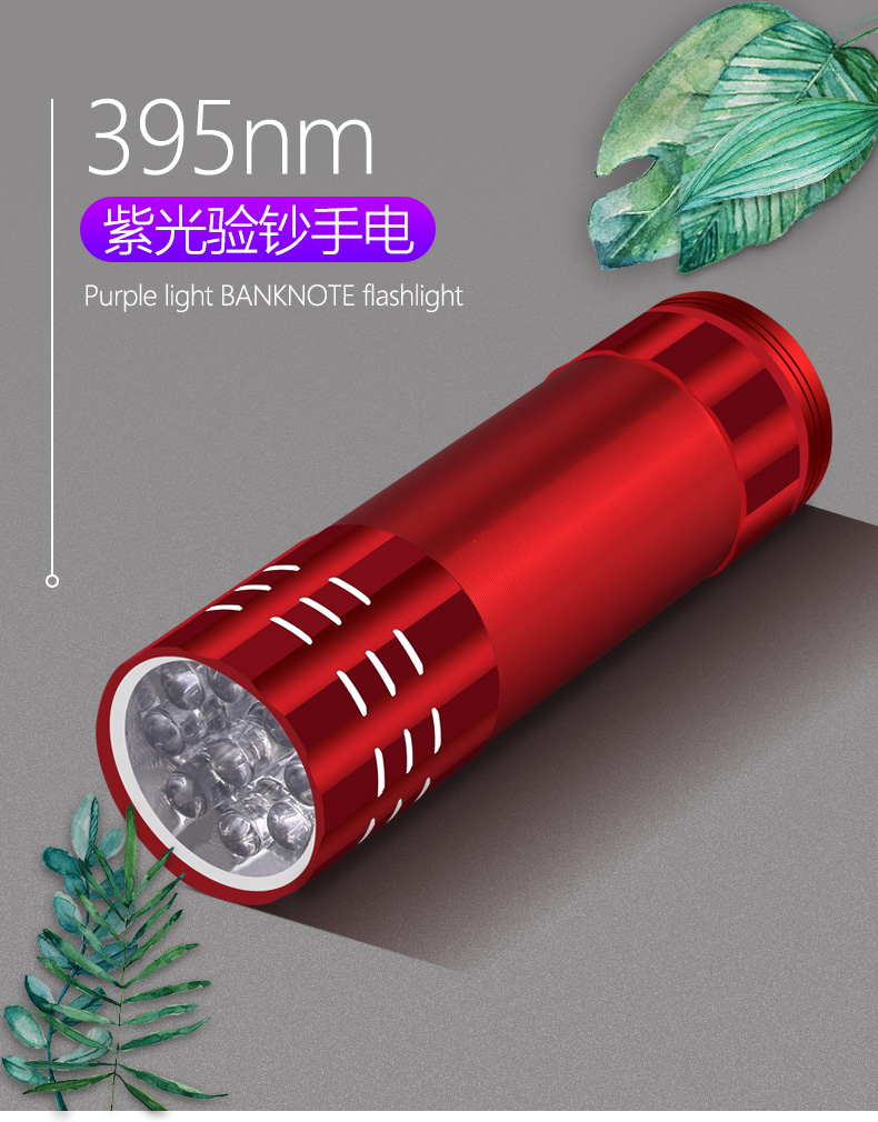 【配送尾绳+三节电池】【满两件9折】9led紫光验钞灯笔,紫外线迷你手电筒,荧光剂检测,小型便携验钞机,限时打折! 紫外线手电筒便携式测荧光剂检测笔