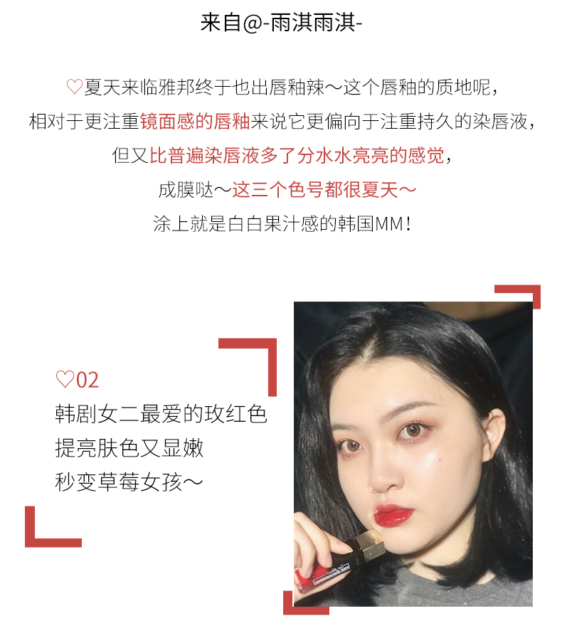 水当当的雾面红唇,秋冬新色,点亮双唇尽显魅力。持久妆效,莹润保湿,不易脱妆。多种色号,玩转花样心情,一抹水润亮泽,女人不止有一只口红