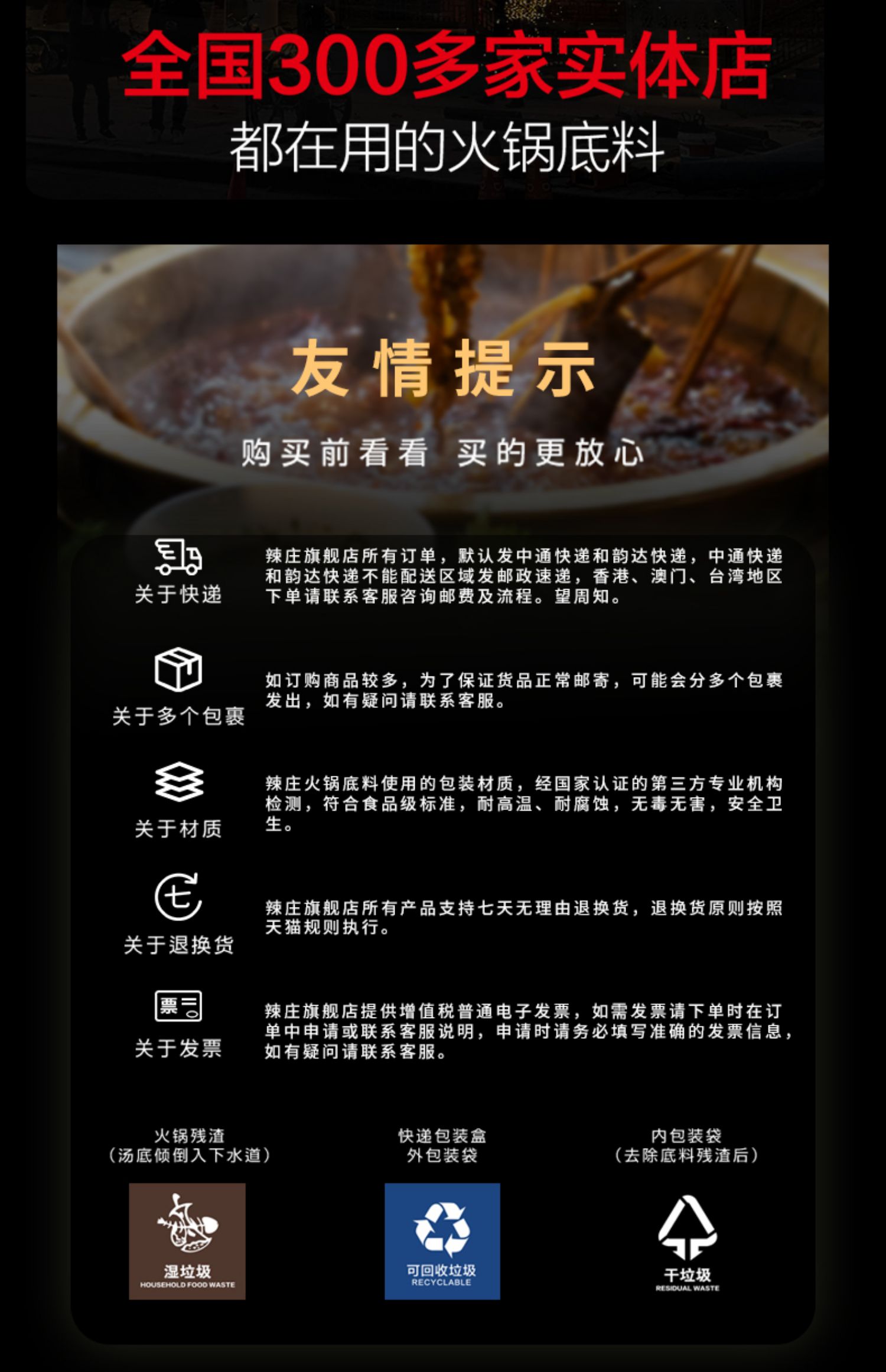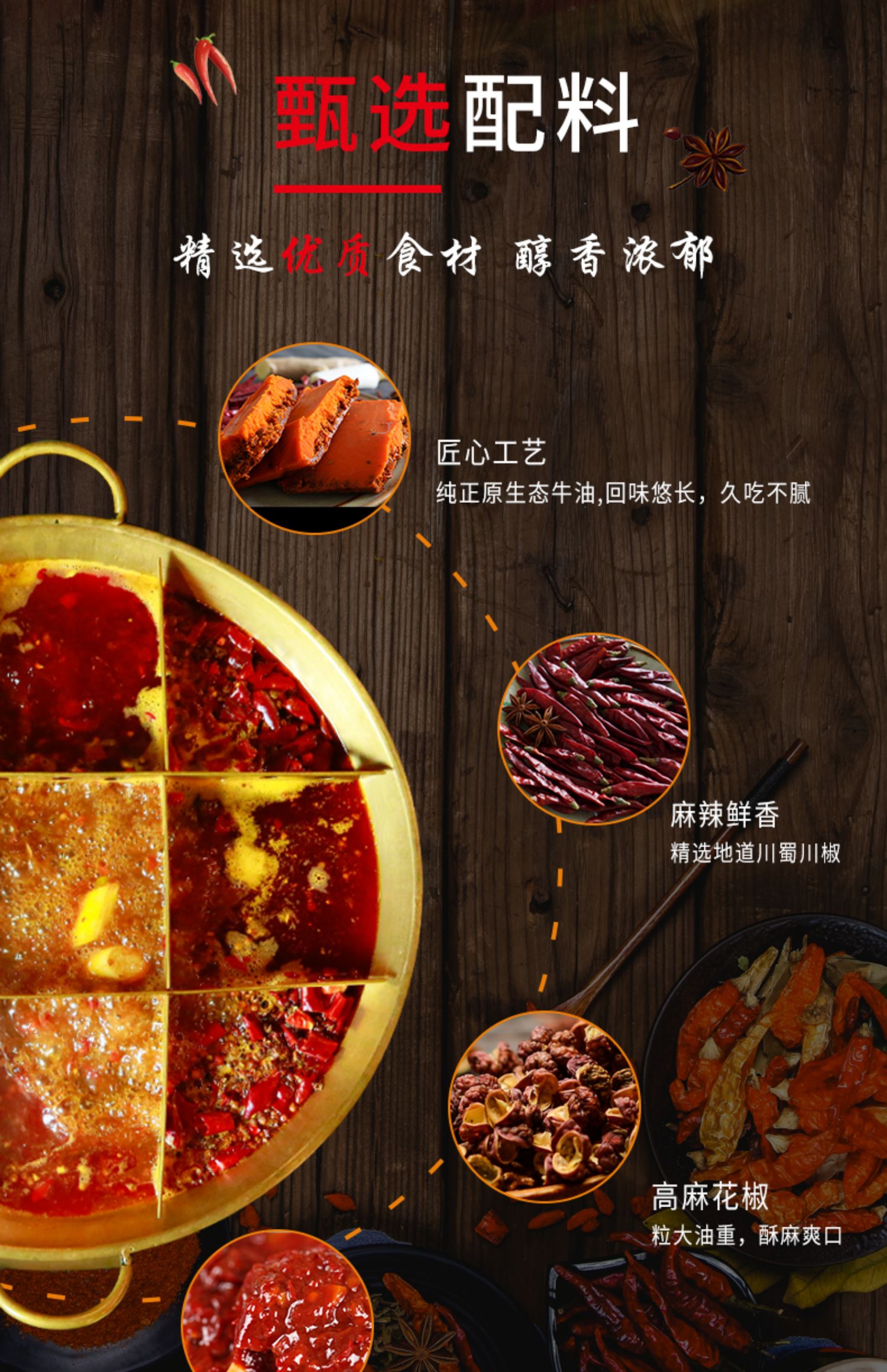 【辣庄重庆知名品牌】10年匠心,全国300多家实体店,都在用的火锅底料,醇香浓郁,麻辣鲜香,可涮火锅,水煮牛肉,干锅,焖肉等做法,征服你挑剔的嘴。