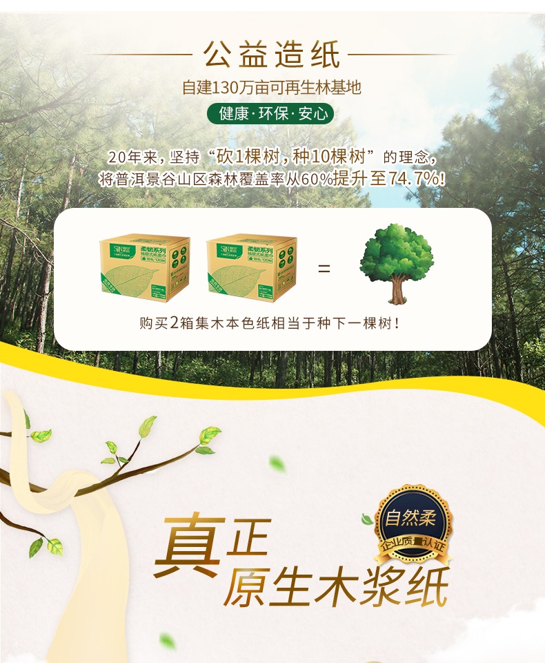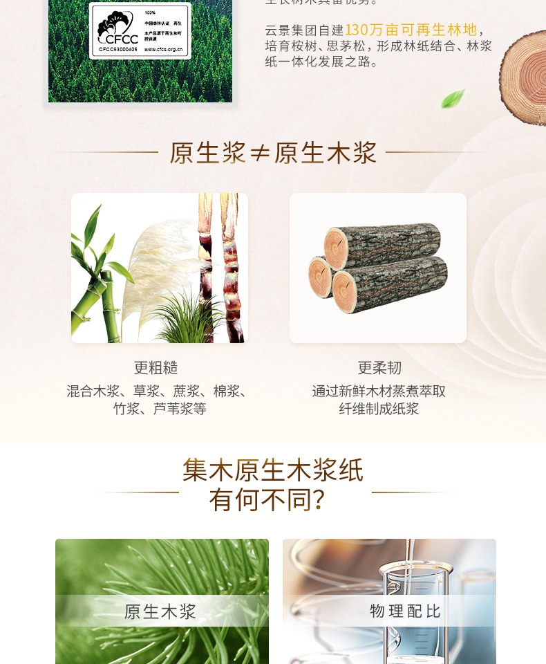 【集木优品旗舰店】原木本色亲密接触母婴适用,无添加无荧光剂,健康环保原生木浆纸,360度细致喷浆,纸张柔滑度直线提升,更细腻,更柔软,吸水不易破,不掉屑,亲密接触,母婴适用。