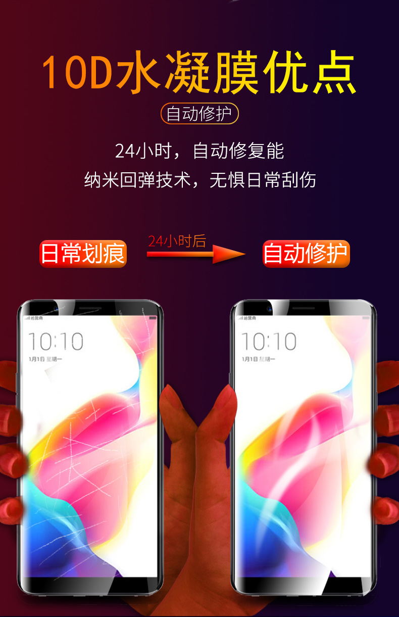 【送镜头膜+后模+贴膜神器】韩国进口10D水凝冻膜,24小时,自动修复刮痕,纳米回弹技术,无惧刮伤!抗蓝光,保护眼睛,无白边,无气泡,无需喷水!还原裸机手感!!