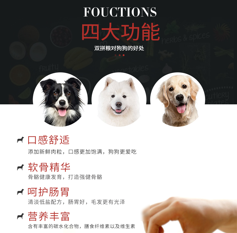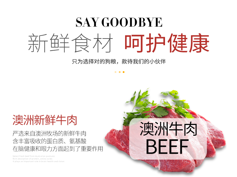 富含多种蛋白质,氨基酸,强健骨骼,美毛健体,易于消化,营养丰富,拒绝任何化学添加,让狗狗的健康成长!