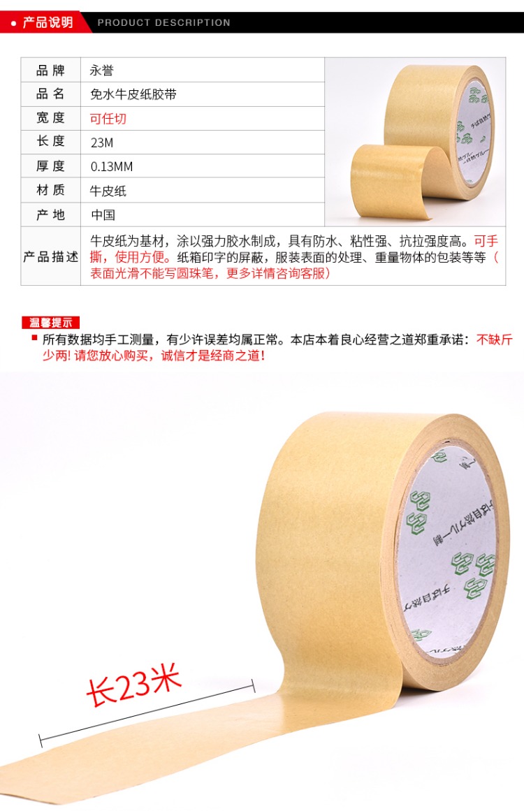 牛皮纸胶带,高粘相框胶纸质胶纸,棕色免水23米长,超强力牛皮胶纸大力封箱胶带,书皮裱画相框纸单面封口带胶!