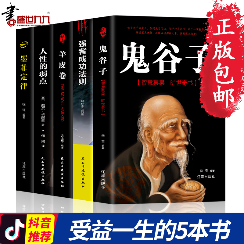 【正版套装5本】抖音推荐全套5本书籍,鬼谷子+墨菲定律+人性的弱点+羊皮卷+强者书籍,读完这5本书,没有你进不了的圈子,让人受益一生的5本书籍,好书精选!