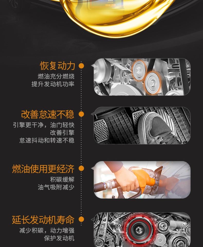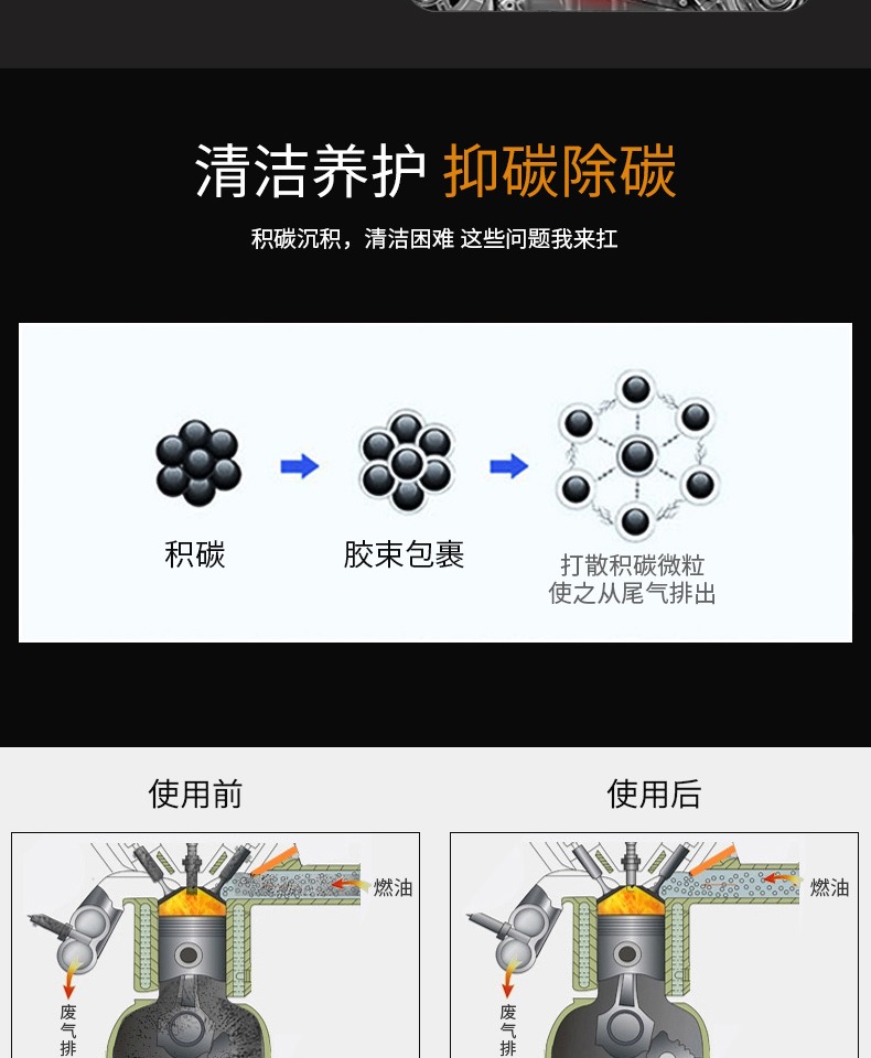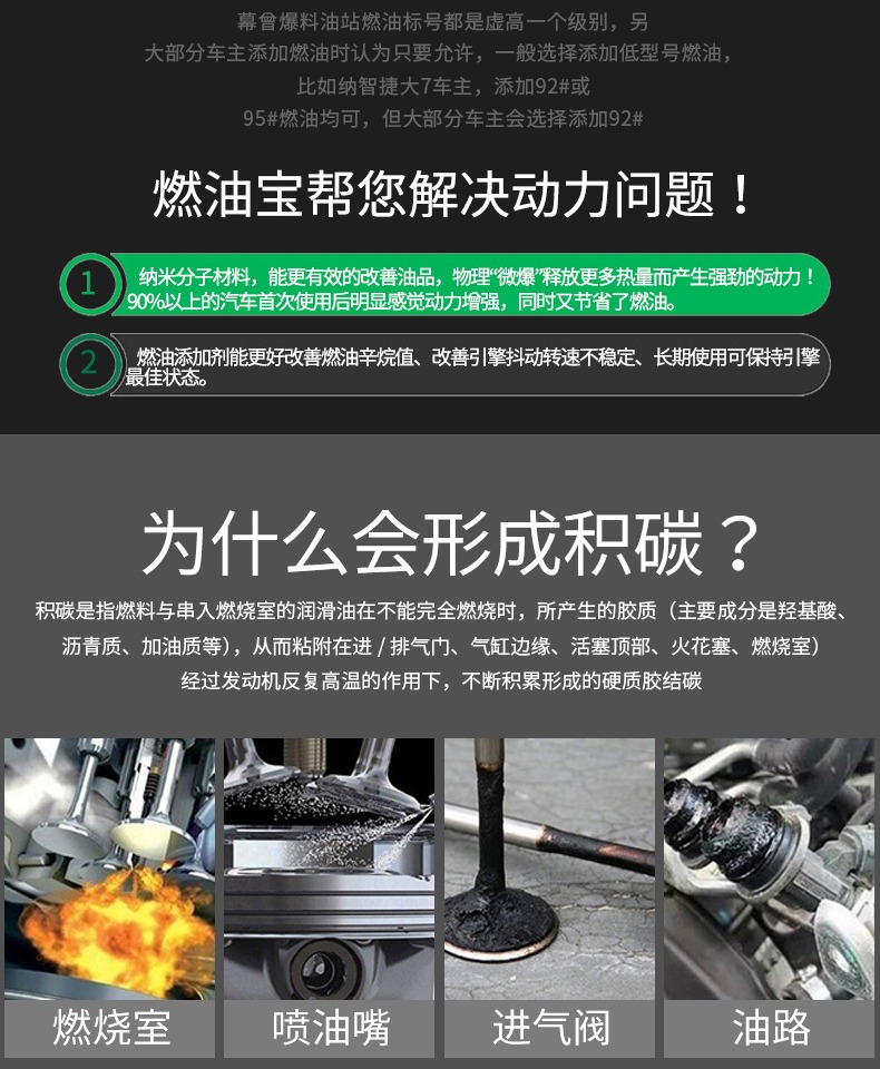 强效节省燃油!提升动力,降低噪音,清除积碳,延长三元催化使用寿命,促进燃烧,改善排放,保护引擎!