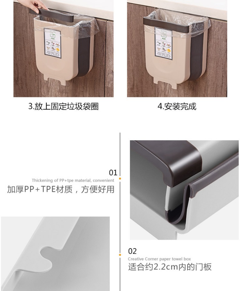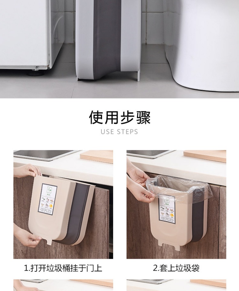 让你下厨房更省心!超贴心,米选厨房挂式垃圾桶!有ta,不用弯腰扔垃圾啦~可折叠,展开使用!挂在厨房橱柜门上,扔厨余垃圾方便,还能防止弄脏地板!
