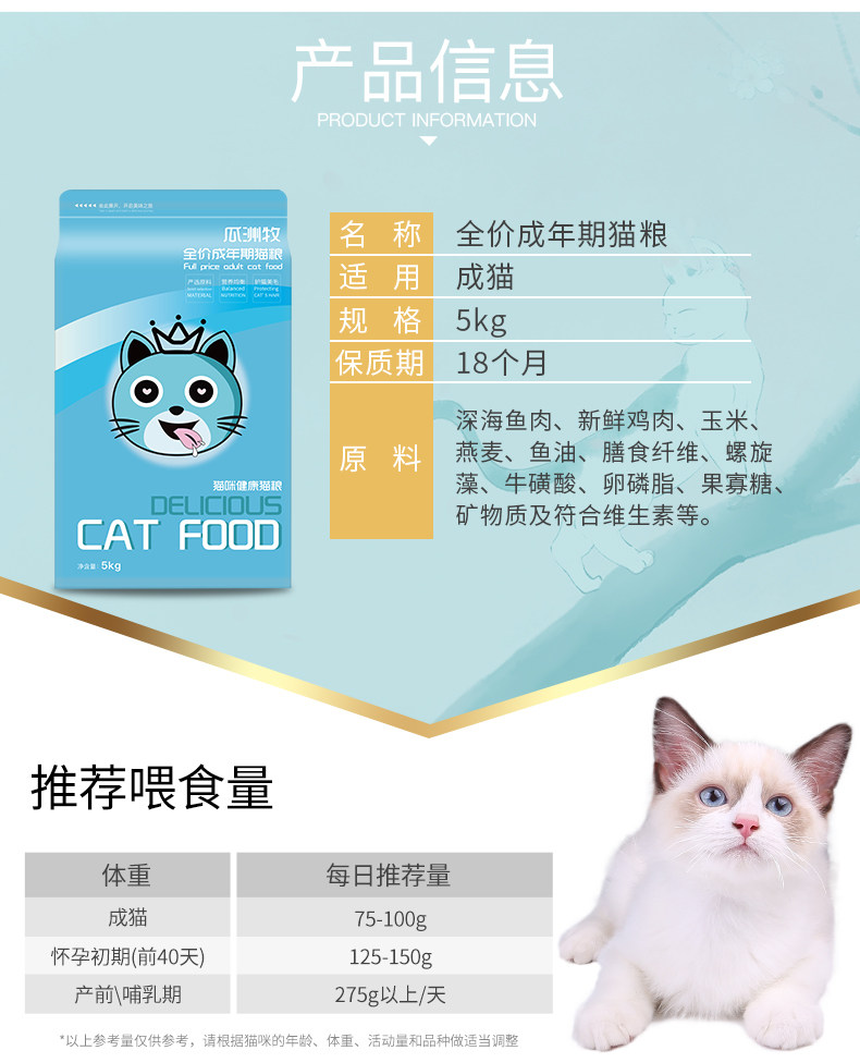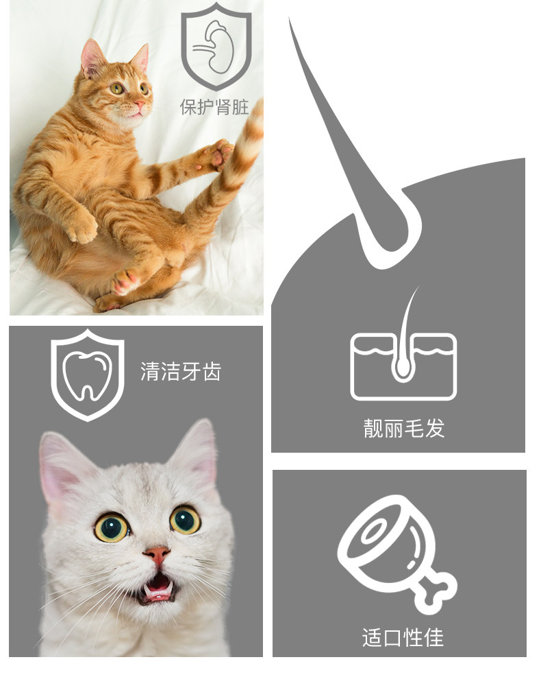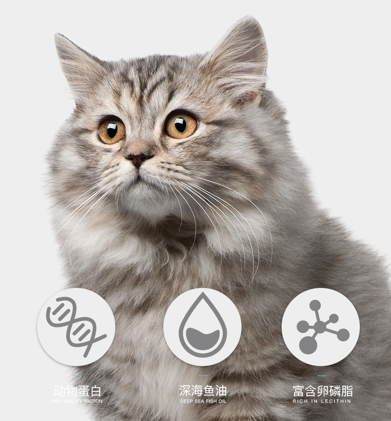 天然营养食材,均衡营养配方,好吃易吸收,满足多种全期猫咪所需营养,靓丽毛发,呵护猫咪眼睛,增强抵抗力,实力宠爱猫主子~