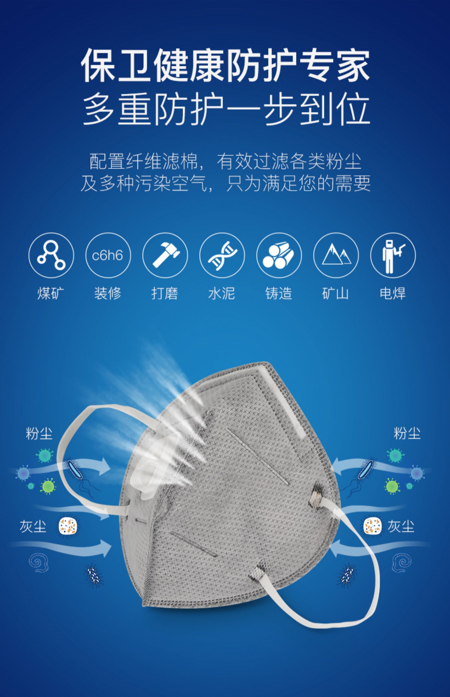 舒适透气,强效防护,舒适贴合,有效排除呼出的湿气与热气,提高舒适感,呼吸阻力小,阻隔雾霾率高达90%以上,安全卫生