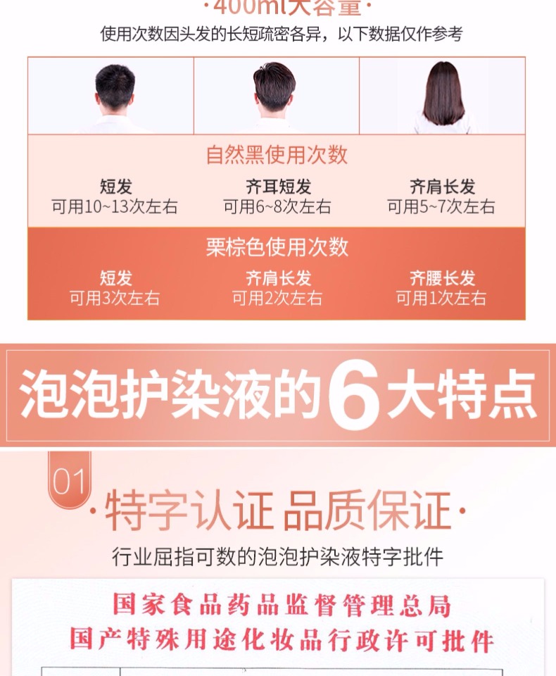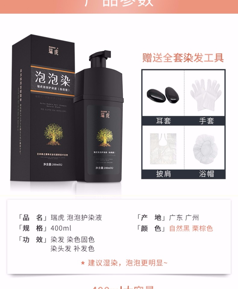 【正品保证】送染发工具包,药监局认证产品,突破传统染发模式,按压取液,泡泡洗染,植物配方,操作方便,染发洗发一步到位,三种颜色,任意选择,大容量400ml【赠运费险】