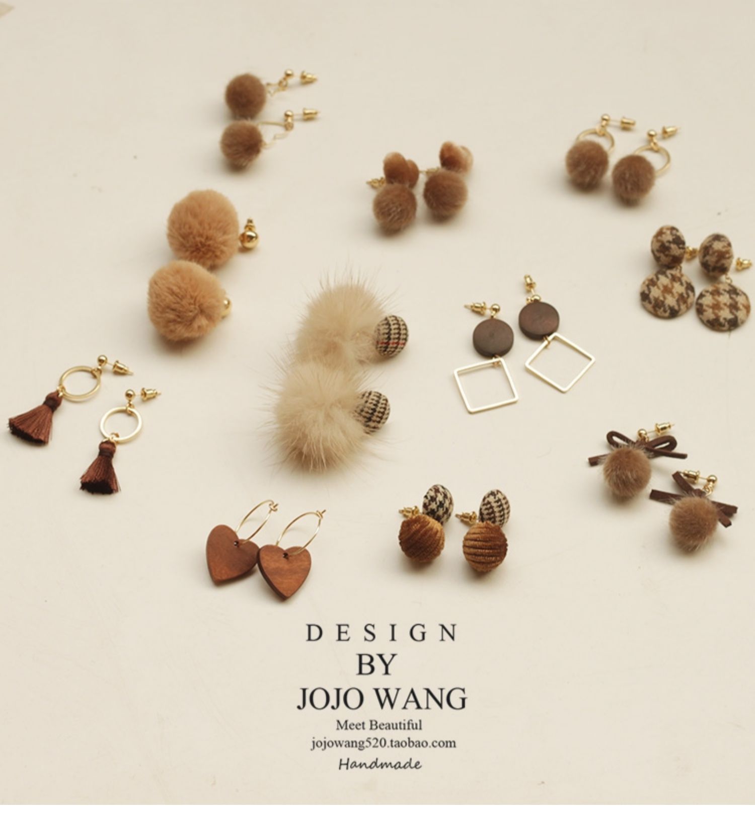 纯手作,咖啡奶茶色系是秋冬的金典色,配上大衣或者贝雷帽,你就是英国女郎哦,防过敏高度保色,款式超多,总有一款适合你哦~