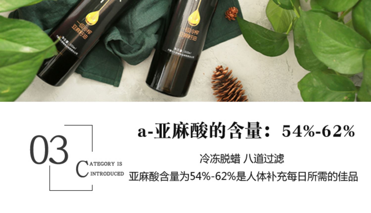 食用亚麻籽油好处多,其在人体内代谢产物DHA远高于鱼油,适合孕妇婴幼儿、孕妇,学生;另一代谢产物EPA被誉为“血管清道夫”,中老年长期食用益处多!老少皆宜!精品食用油!