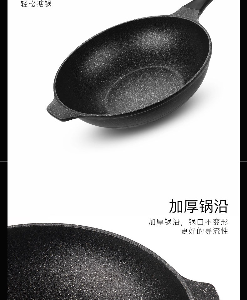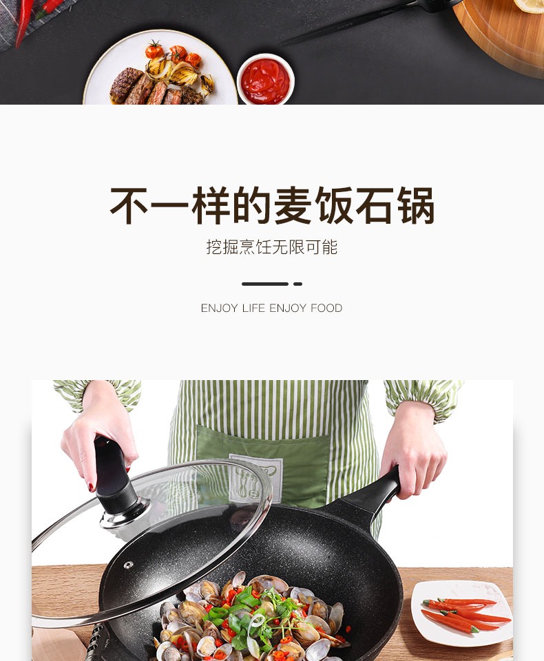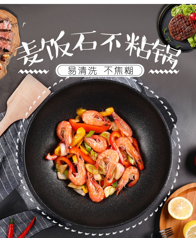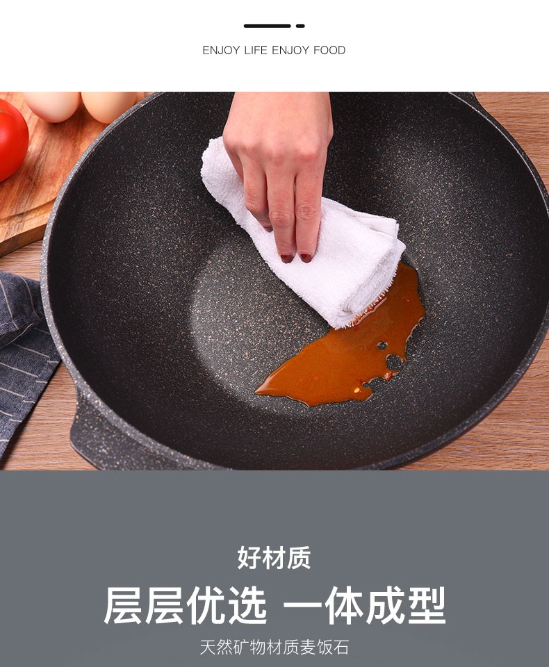 天然麦饭石炒锅,3层复合锅底聚热节能,耐磨耐用,油烟少,不粘锅,易清洗,不挑灶,电磁炉明火通用【赠运费险】