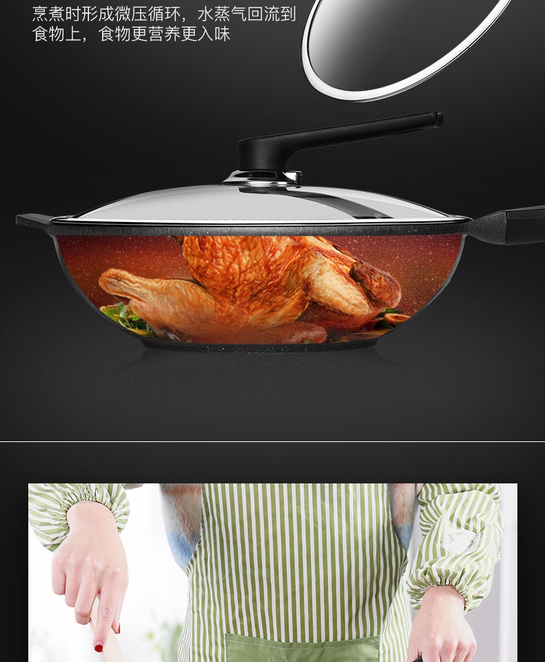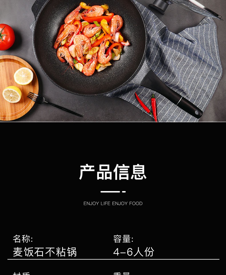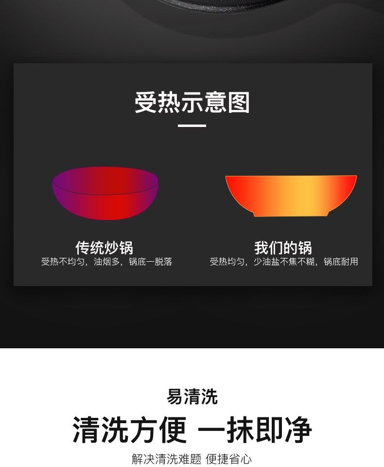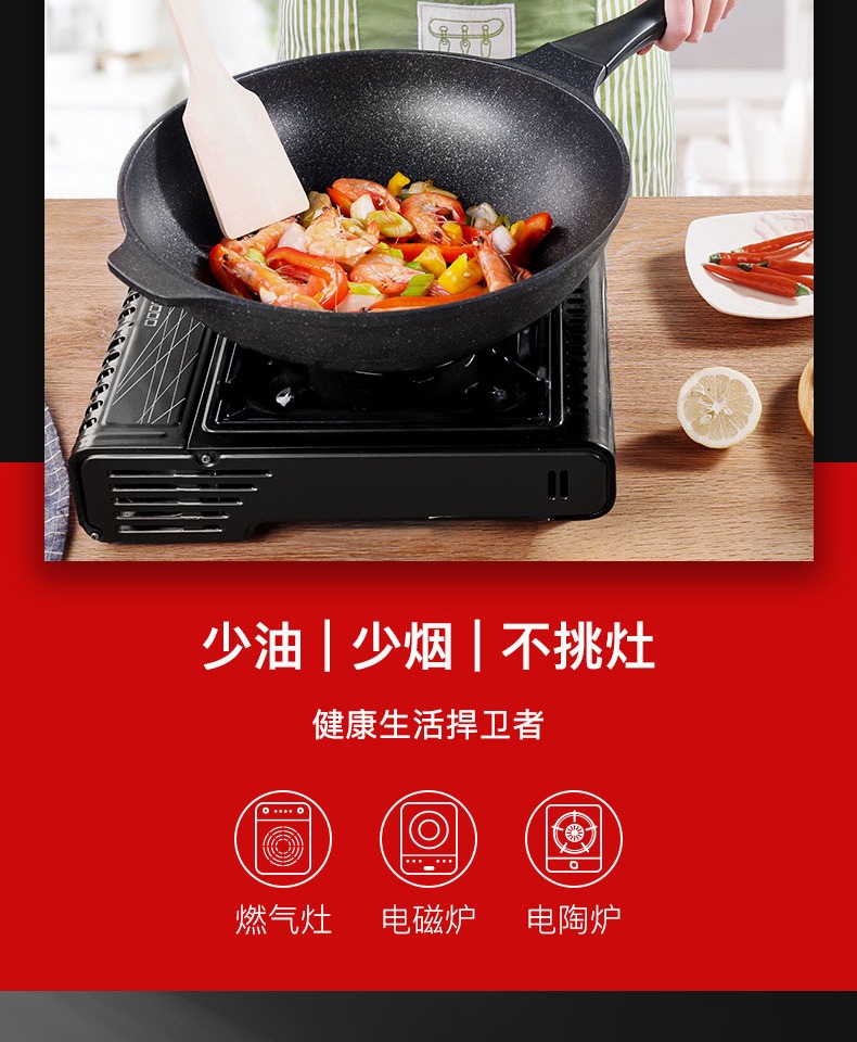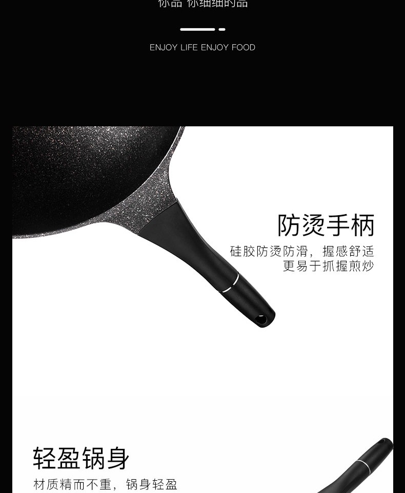 天然麦饭石炒锅,3层复合锅底聚热节能,耐磨耐用,油烟少,不粘锅,易清洗,不挑灶,电磁炉明火通用【赠运费险】