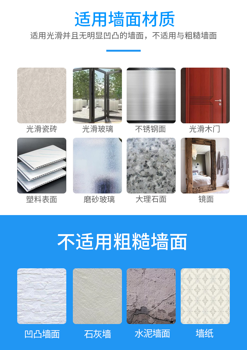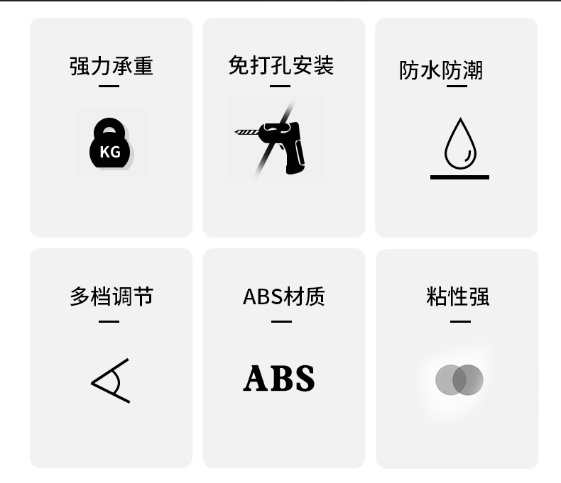 免打孔,承重力强。一贴即用,快速安装,不伤墙面,又方便,可调节角度满足不同需求,便携实用。