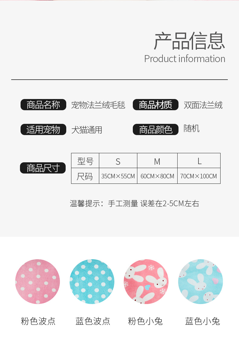 推荐理由:宠物加厚法兰绒毯,狗狗毛毯,宠物猫咪狗狗垫子床垫,三层加厚,里层填充环保丝绵,清洗不变形,环保亲肤。【赠运费险】