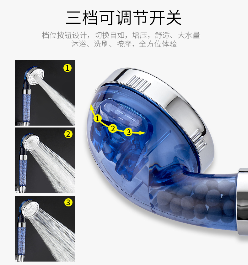 可拆洗莲蓬头,易清洗,负离子,增压出水,三档可调花洒喷头,手持冲凉,淋浴器,洗澡沐浴过滤,专利产品,多款搭配任你选择!