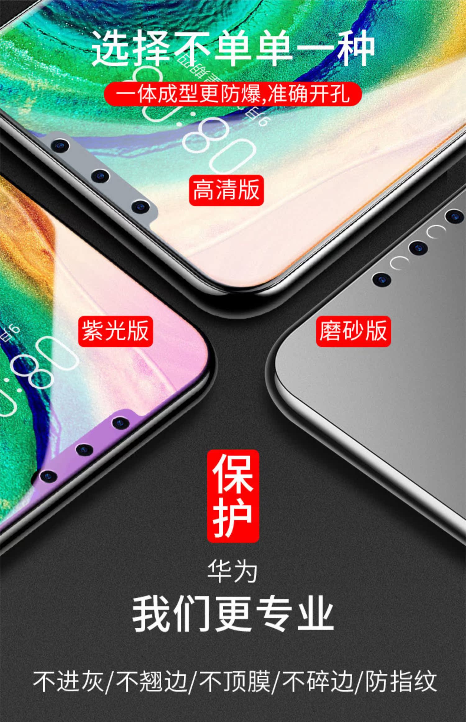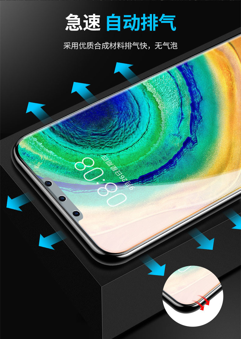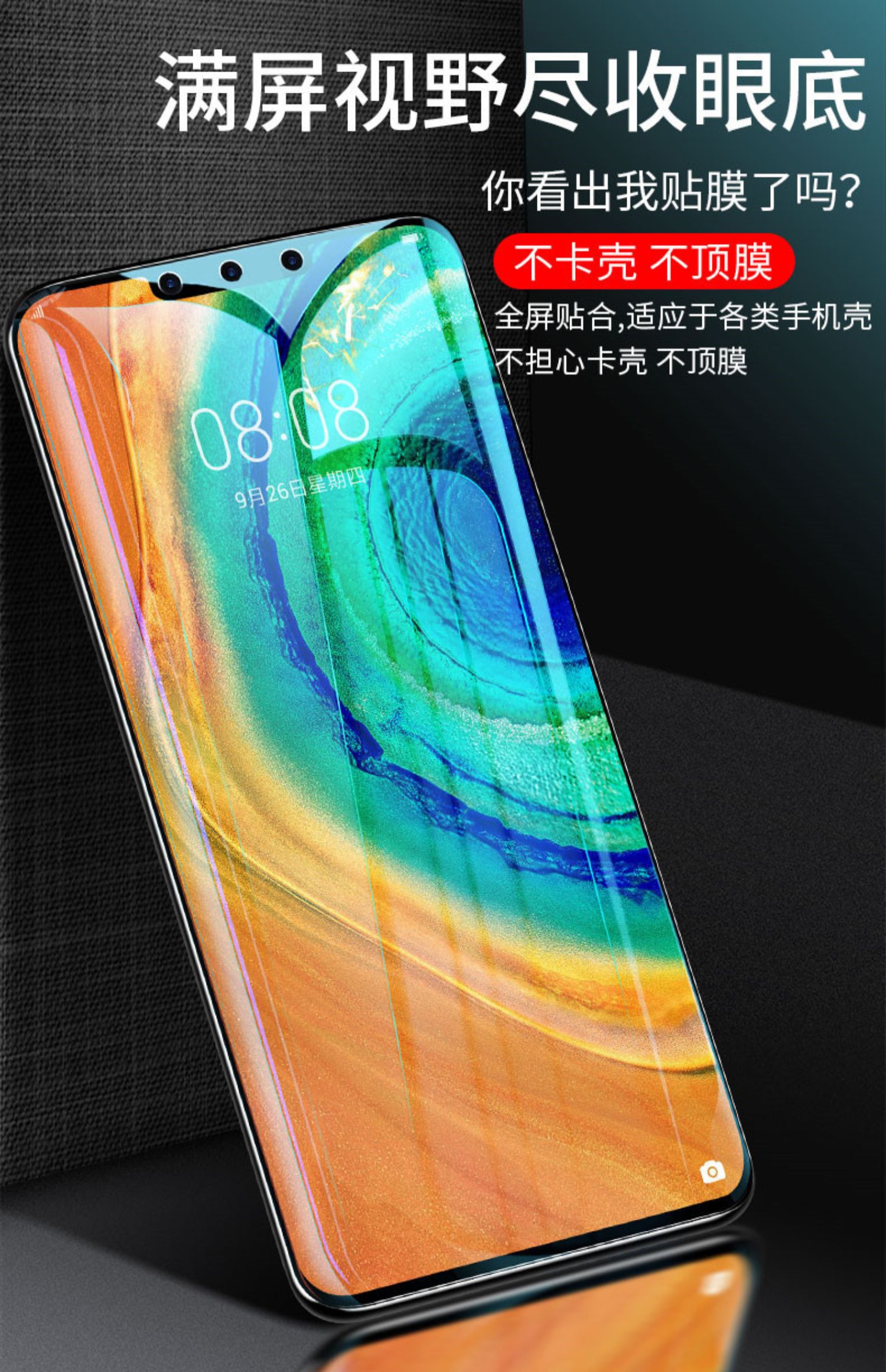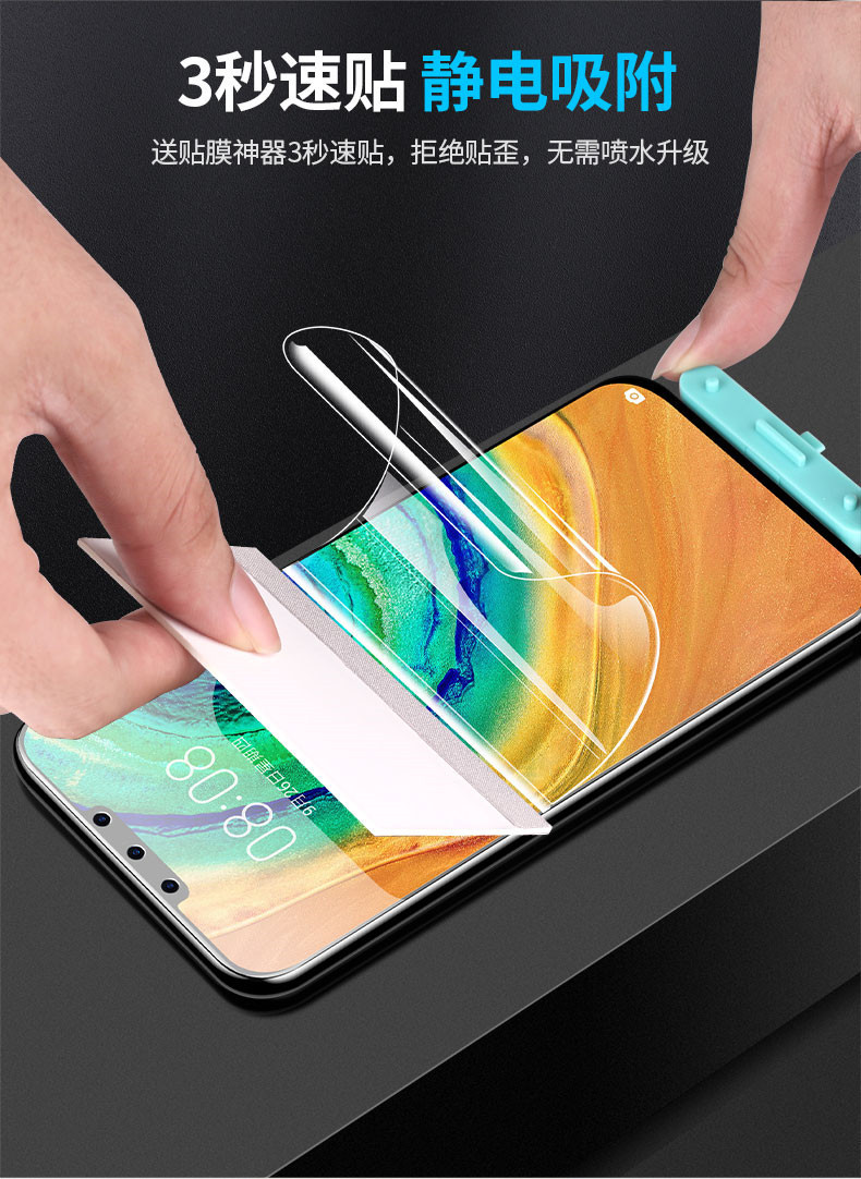 华为P30/Pro水凝膜全屏覆盖!全屏贴合,无白边,不进灰。一体成型,准确开孔,疏油防水,强抗指纹。爽滑手感,触控灵敏。防蓝光,超护眼!