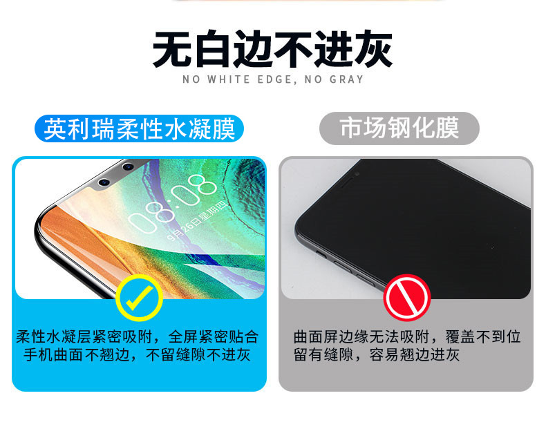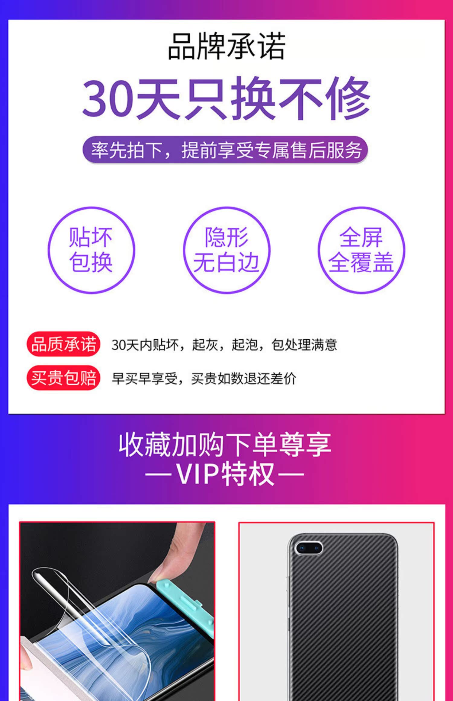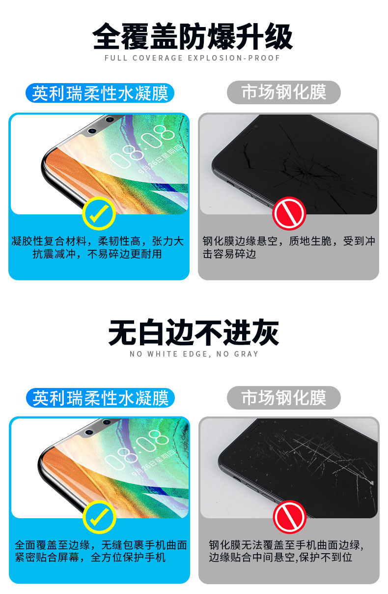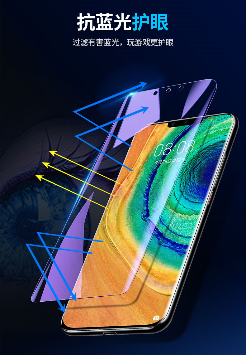 华为P30/Pro水凝膜全屏覆盖!全屏贴合,无白边,不进灰。一体成型,准确开孔,疏油防水,强抗指纹。爽滑手感,触控灵敏。防蓝光,超护眼!