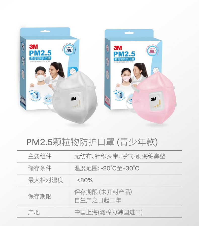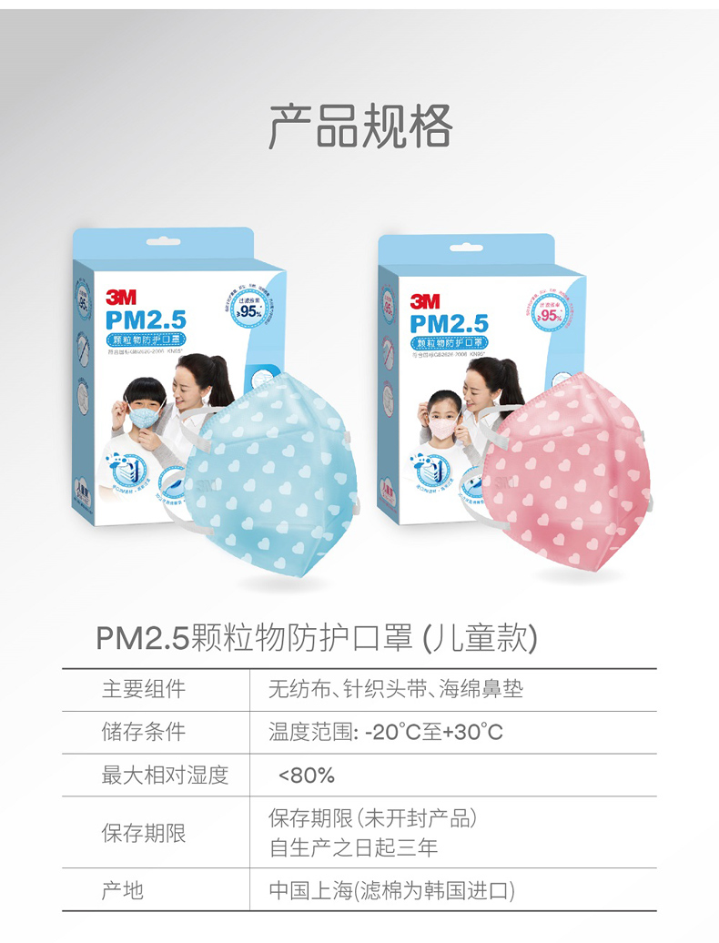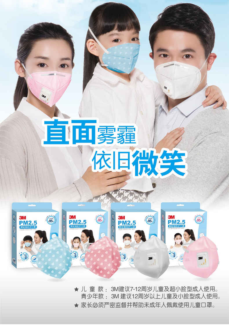 3M口罩儿童PM2.5防雾霾KN95