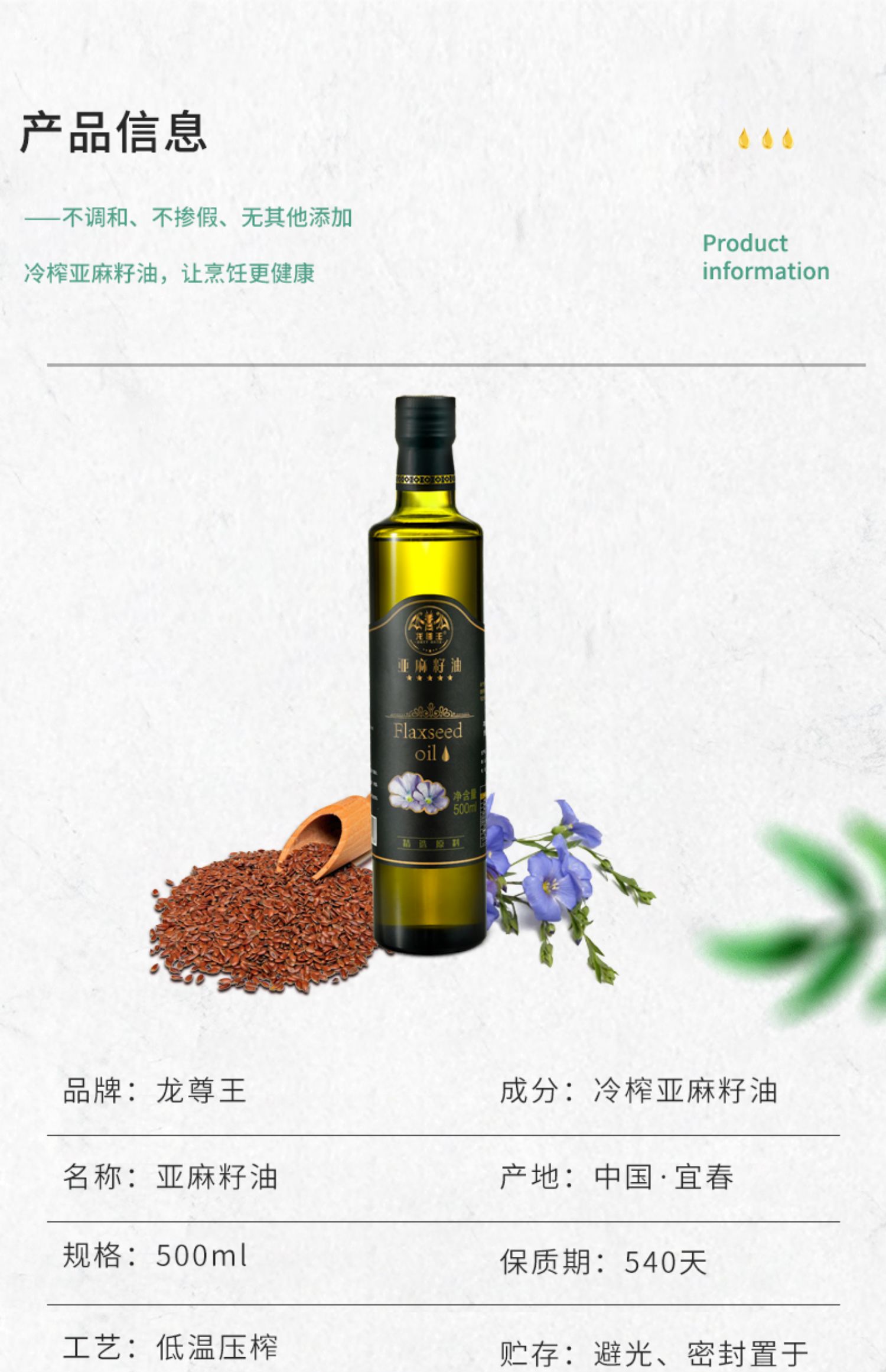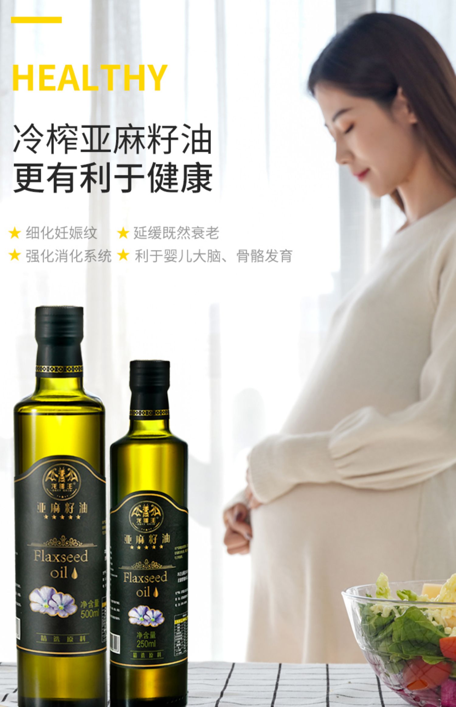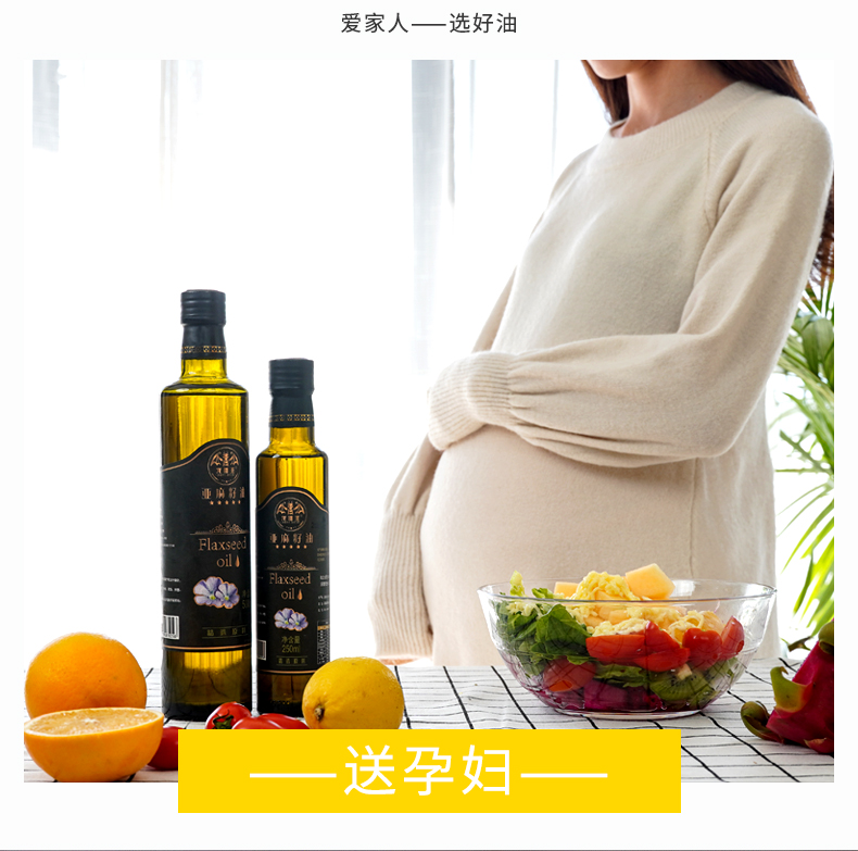 【冷榨优质,500ml装】老人小孩孕妇都能食用,细化妊娠纹,促进大脑发育!居家必备,健康生活优选好品~含富含a亚麻酸可直接食用,凉拌,低温烹饪,调制酸奶,利于婴儿大脑骨骼发育,强化消化系