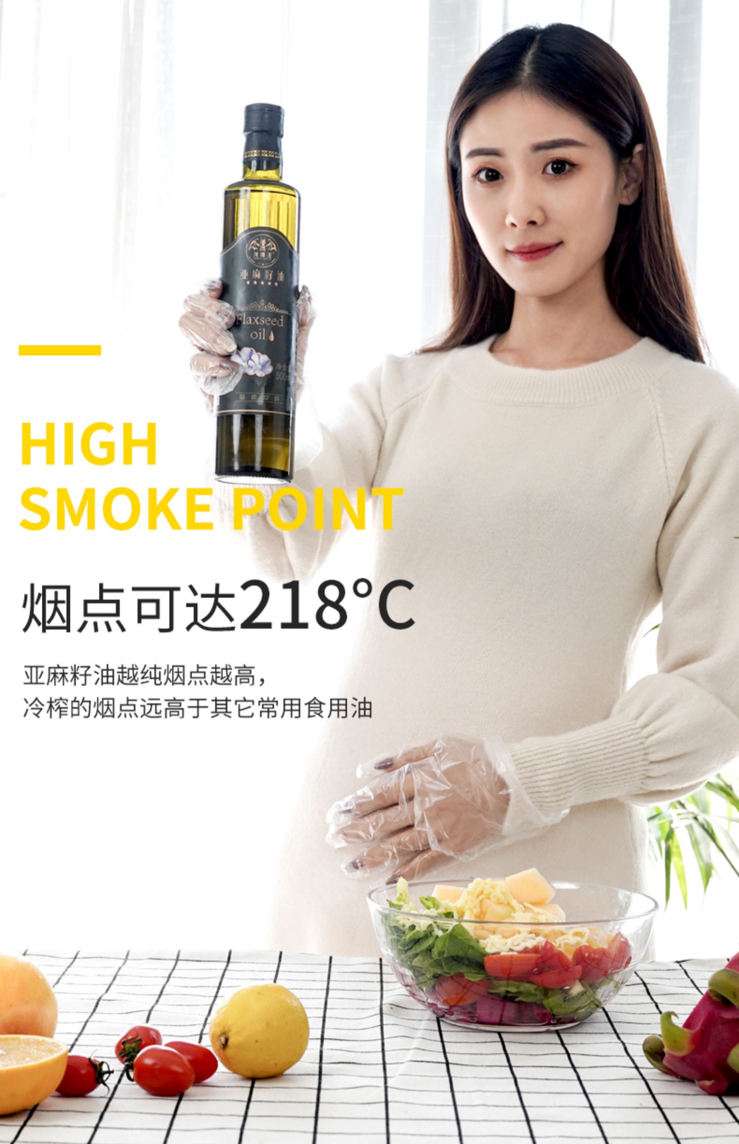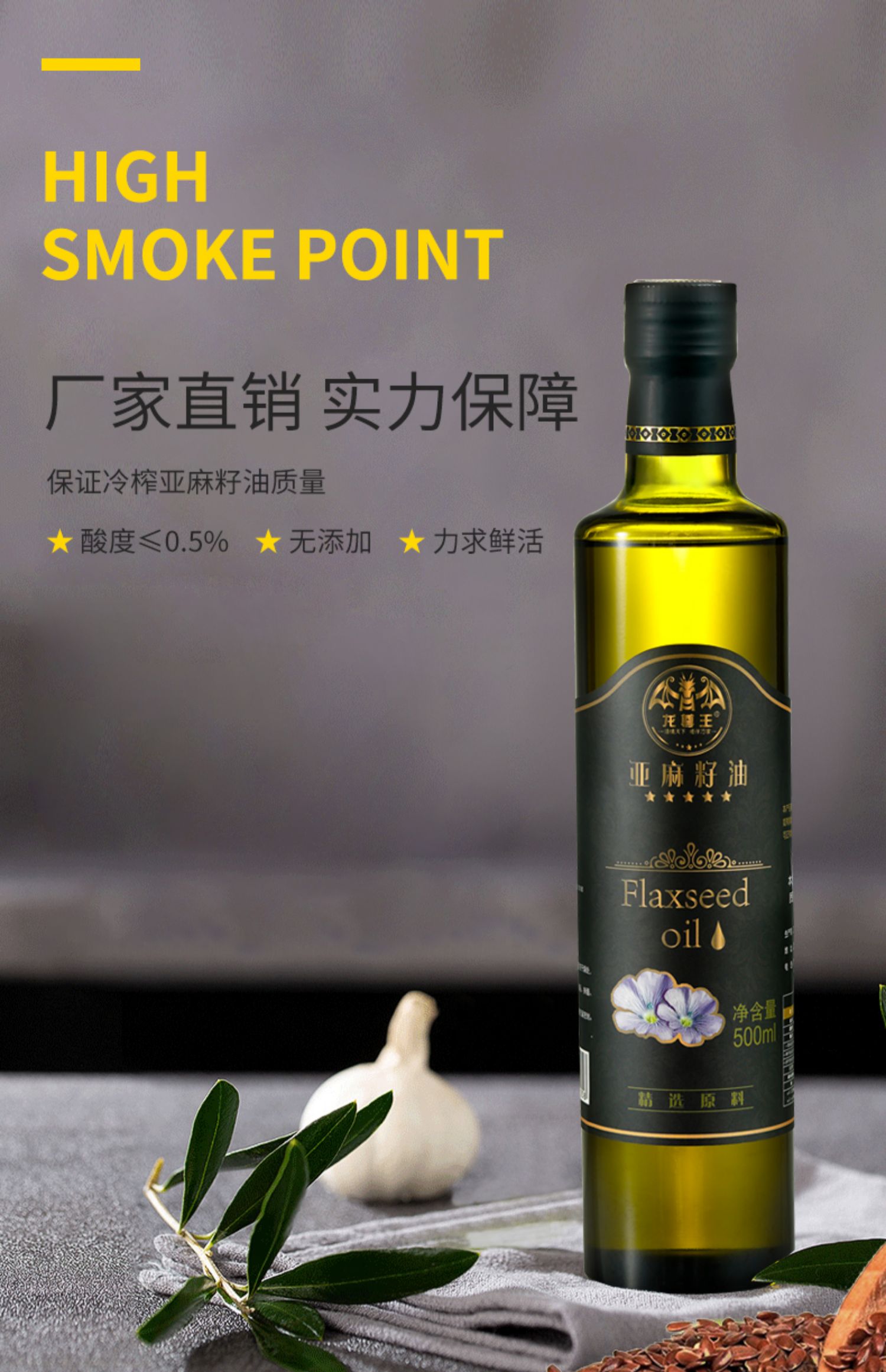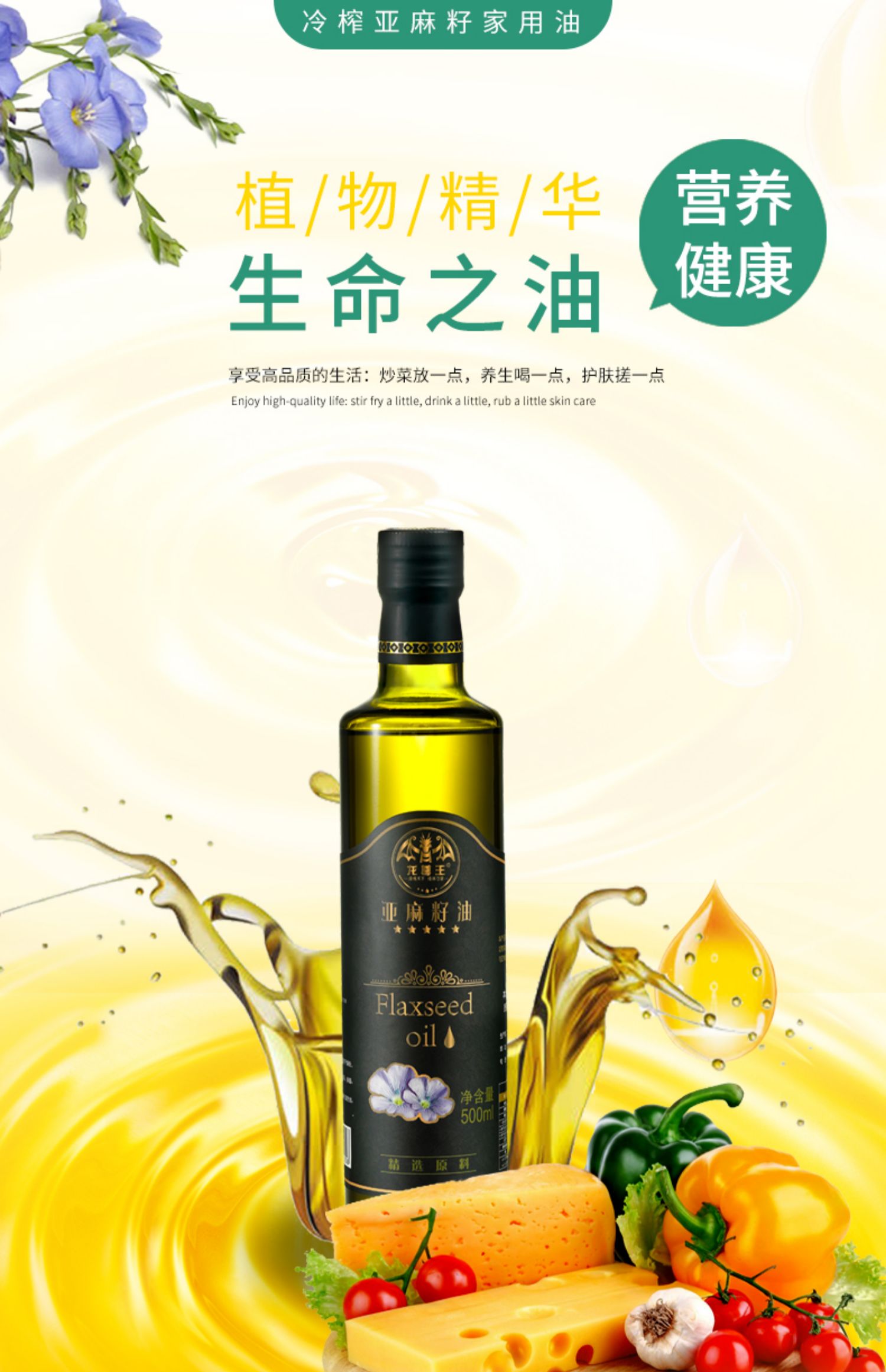 【冷榨优质,500ml装】老人小孩孕妇都能食用,细化妊娠纹,促进大脑发育!居家必备,健康生活优选好品~含富含a亚麻酸可直接食用,凉拌,低温烹饪,调制酸奶,利于婴儿大脑骨骼发育,强化消化系