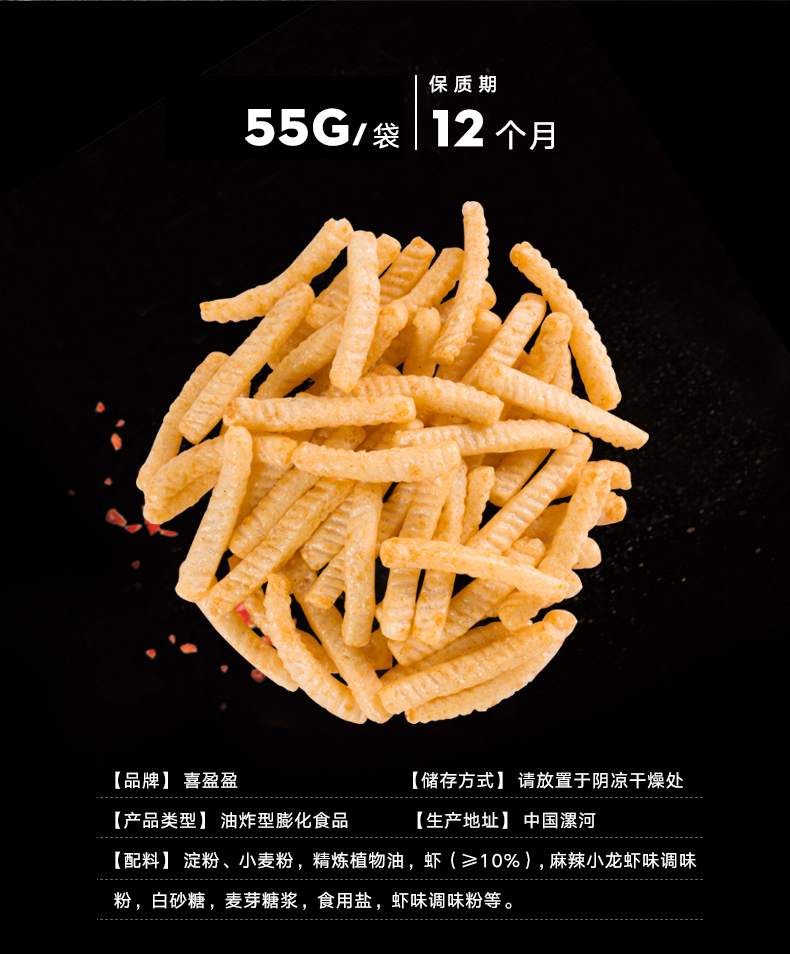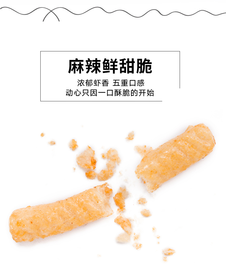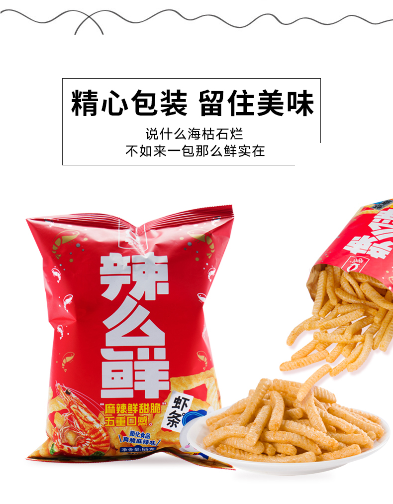 多种口味虾条,经典80、90后零食礼包。优选好食材,遵循传统工艺,口感酥脆,麻辣爆辣咖哩味,多种口味任选~好吃的亲亲虾条,满满的记忆味道!【破损包退】
