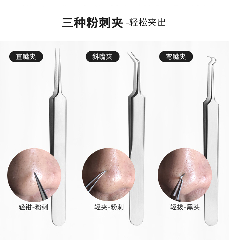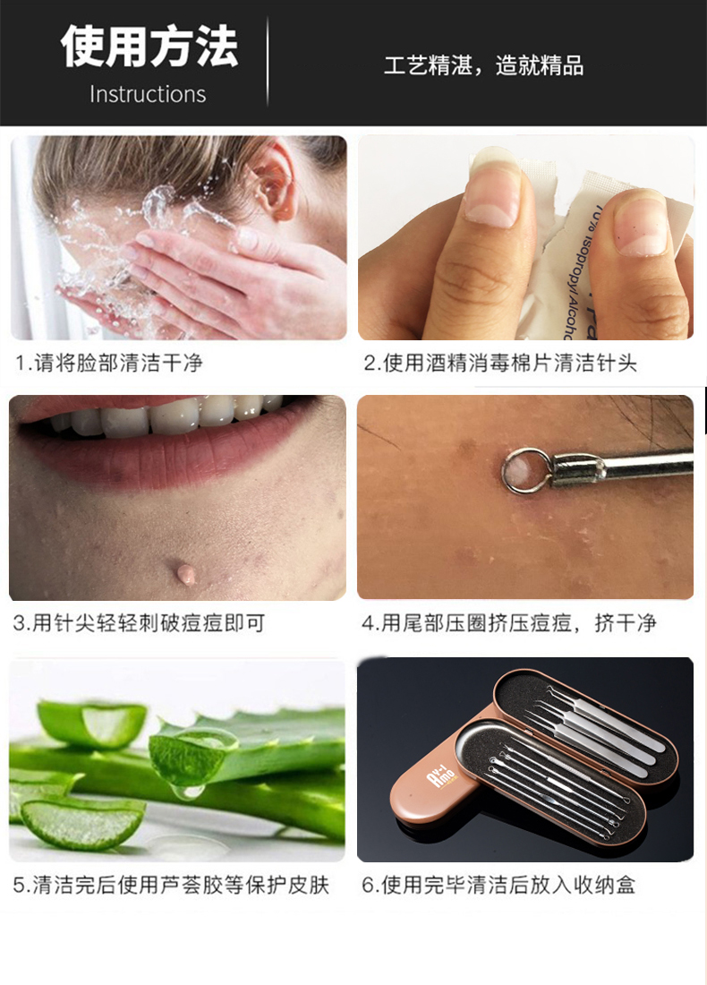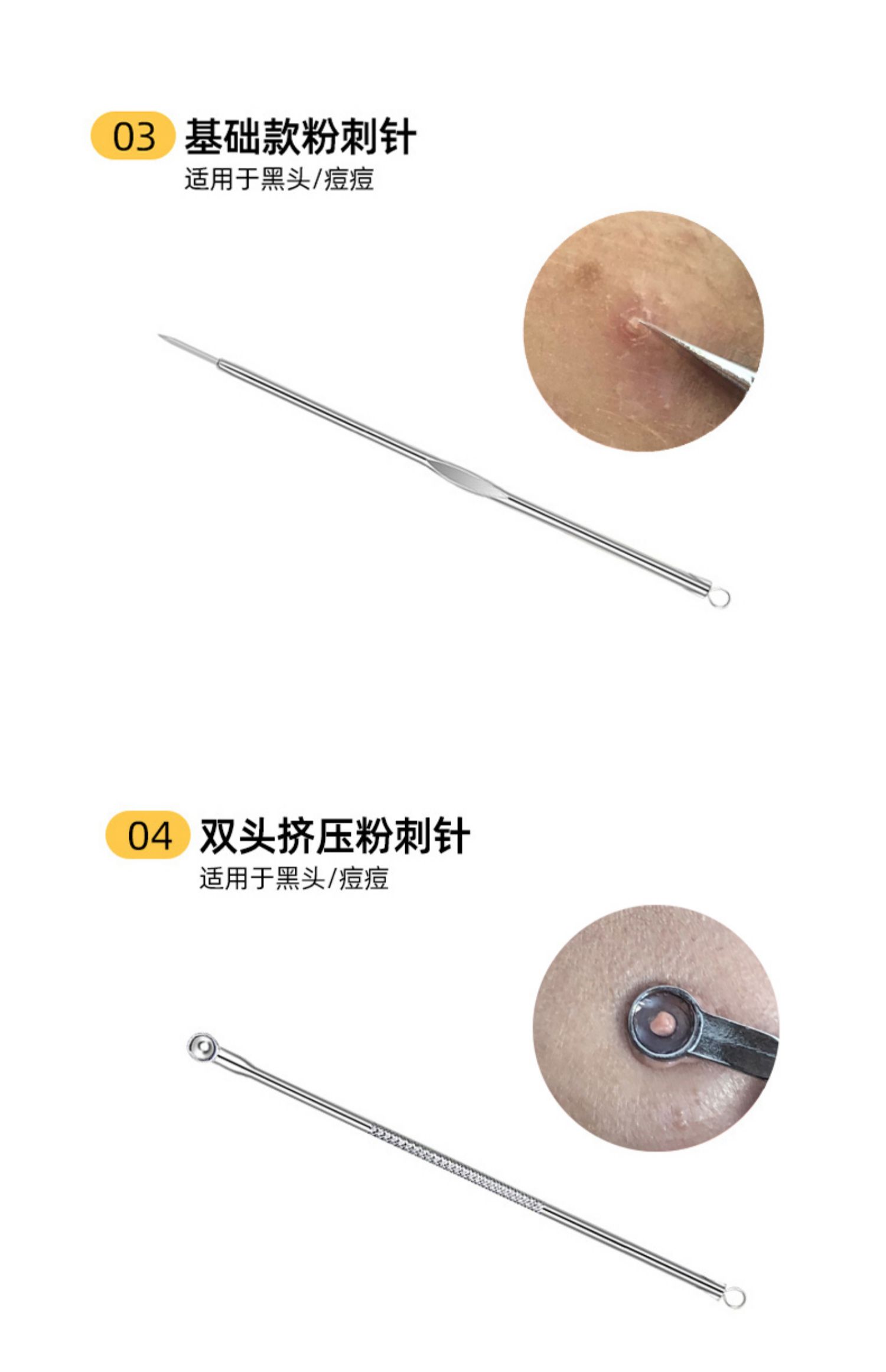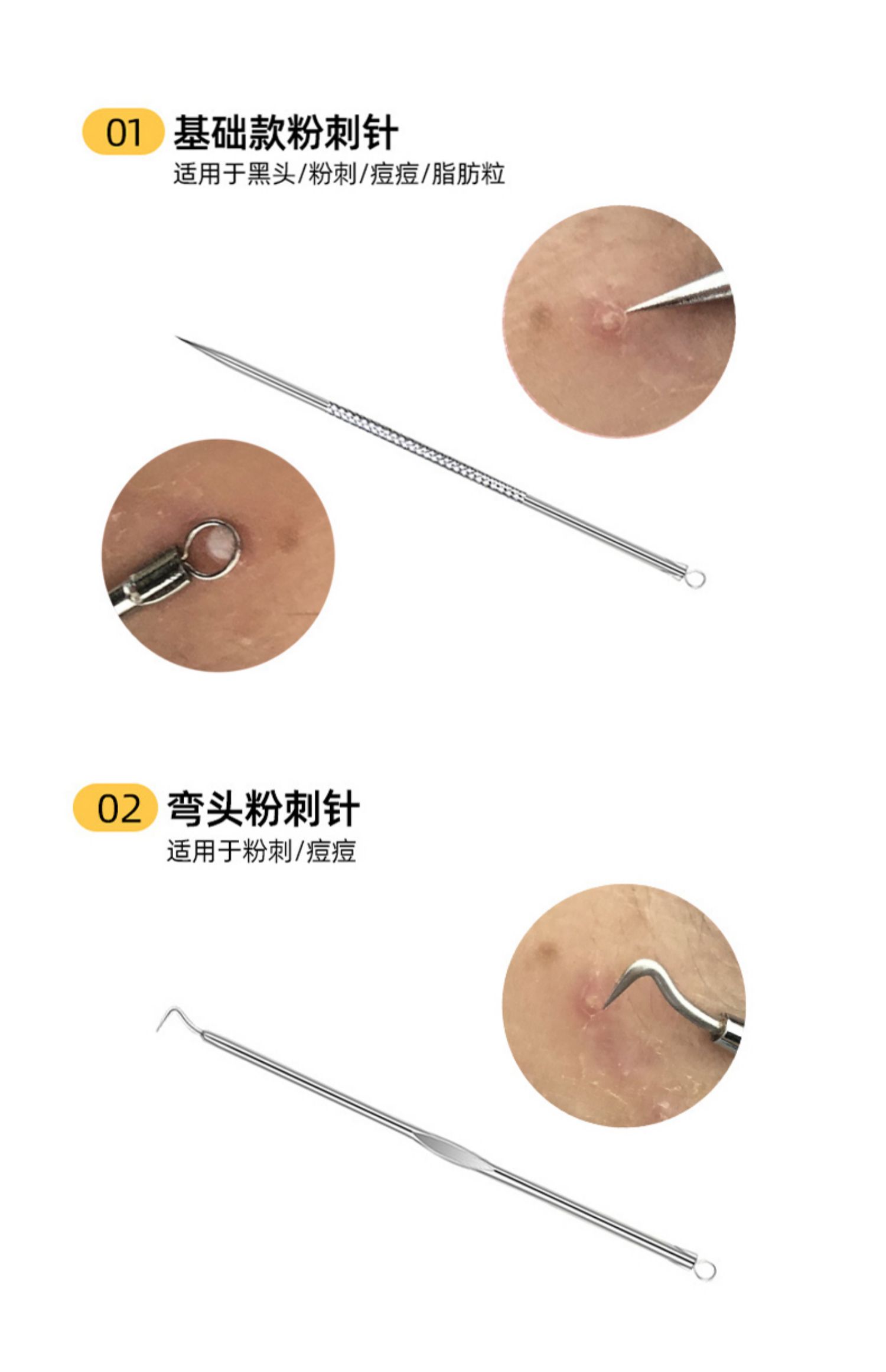 粉刺针套装,美容工具四件套,祛痘挤痘闭口,避免深度直接刺穿皮肤,使用安全,快速处理顽固黑头脂肪粒暗疮痘痘等