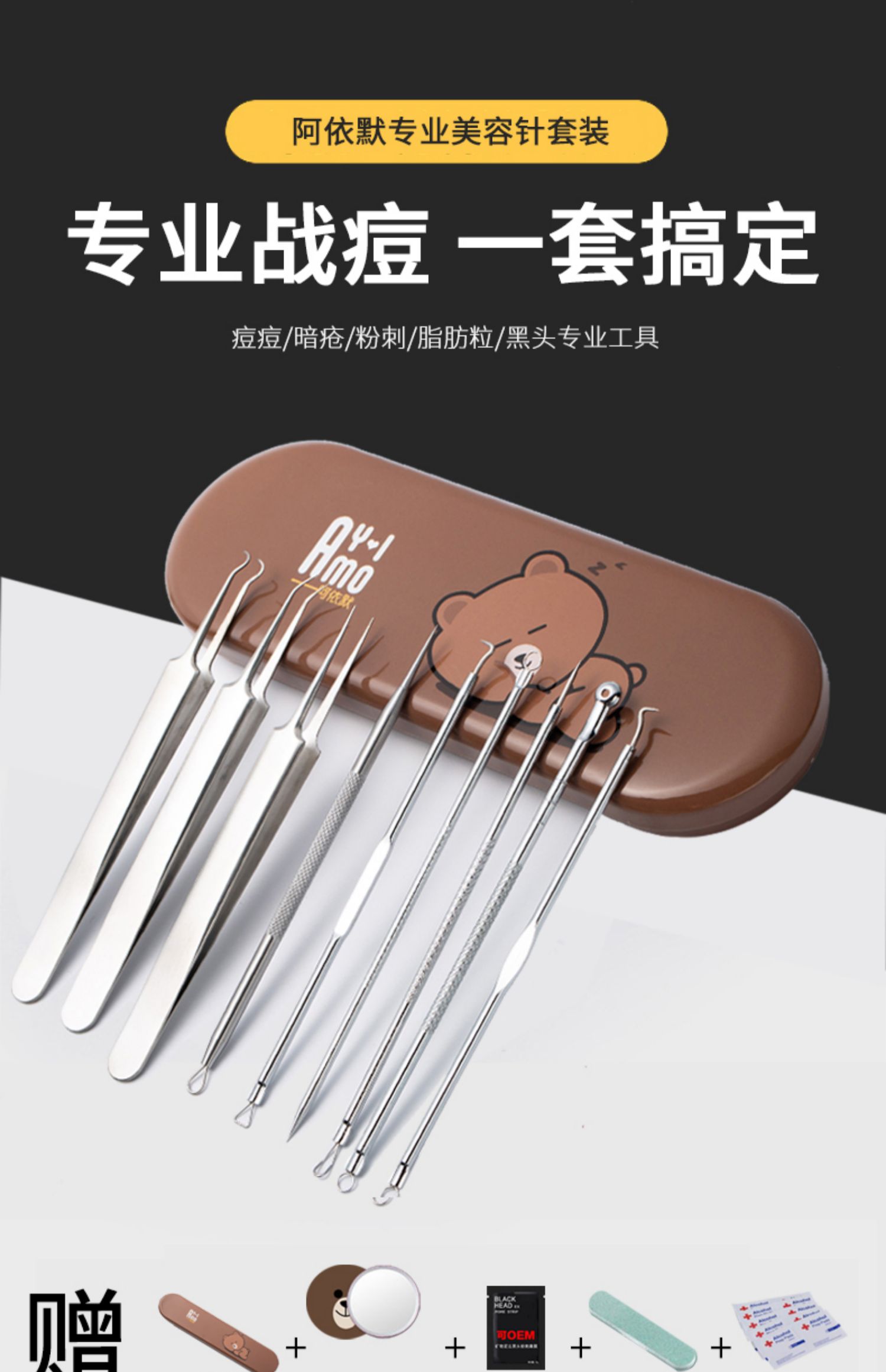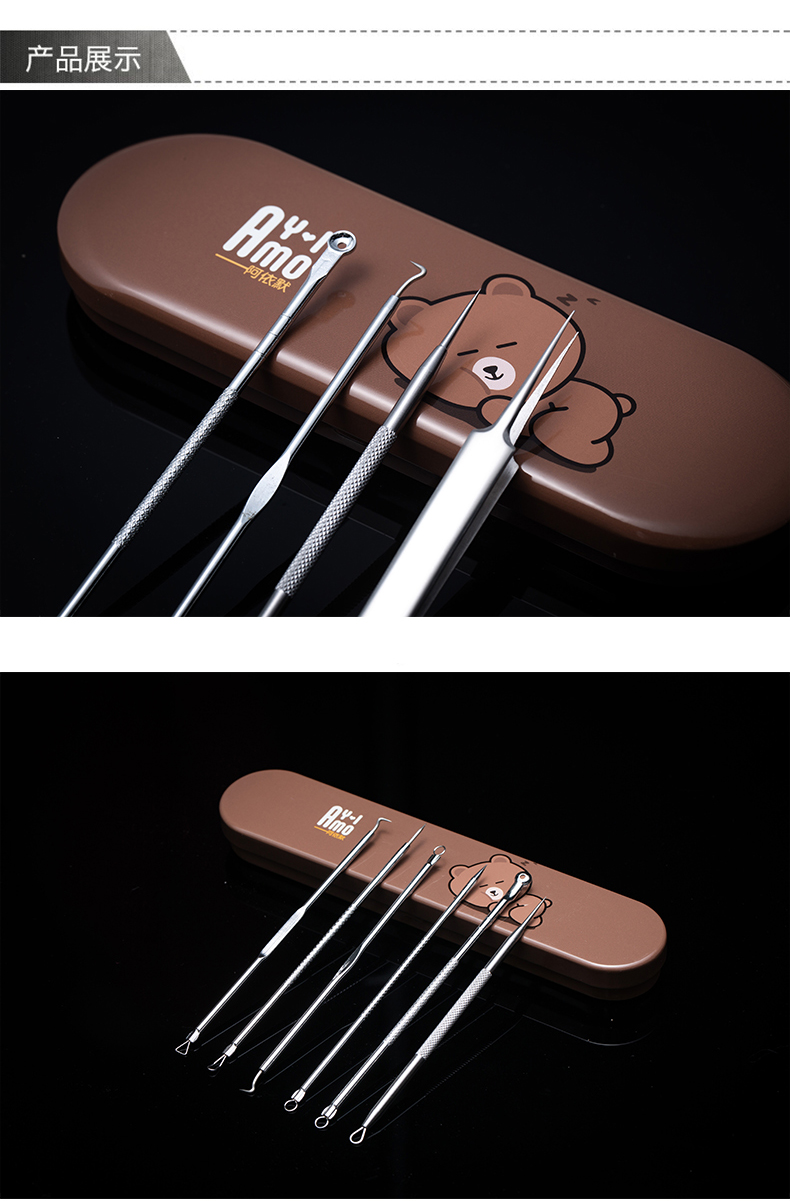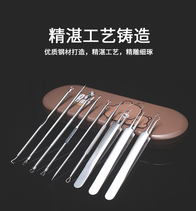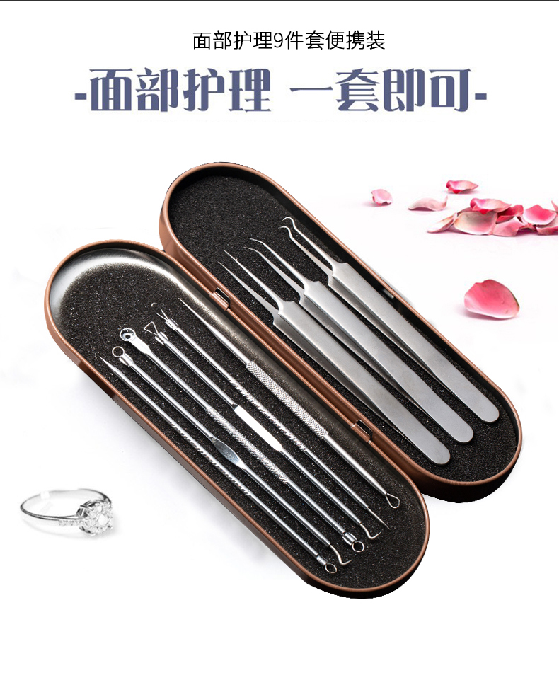 粉刺针套装,美容工具四件套,祛痘挤痘闭口,避免深度直接刺穿皮肤,使用安全,快速处理顽固黑头脂肪粒暗疮痘痘等