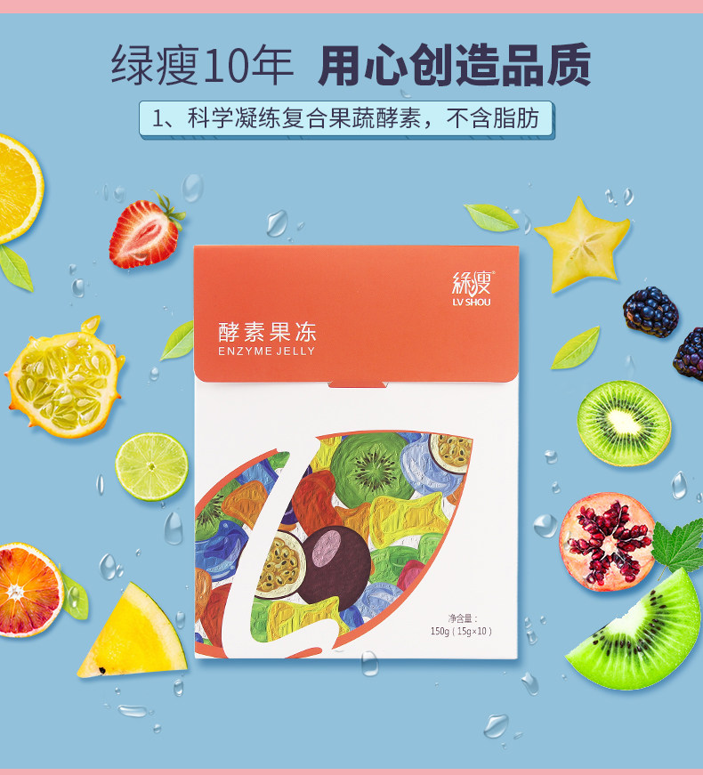 【补充酵素提升代谢能力】腰太粗,宿便排不出!绿瘦果蔬酵素果冻,给你肠道做减法!10条,每天一条,美丽多1分!降压清脂排毒瘦身,做迷人小“腰”精!