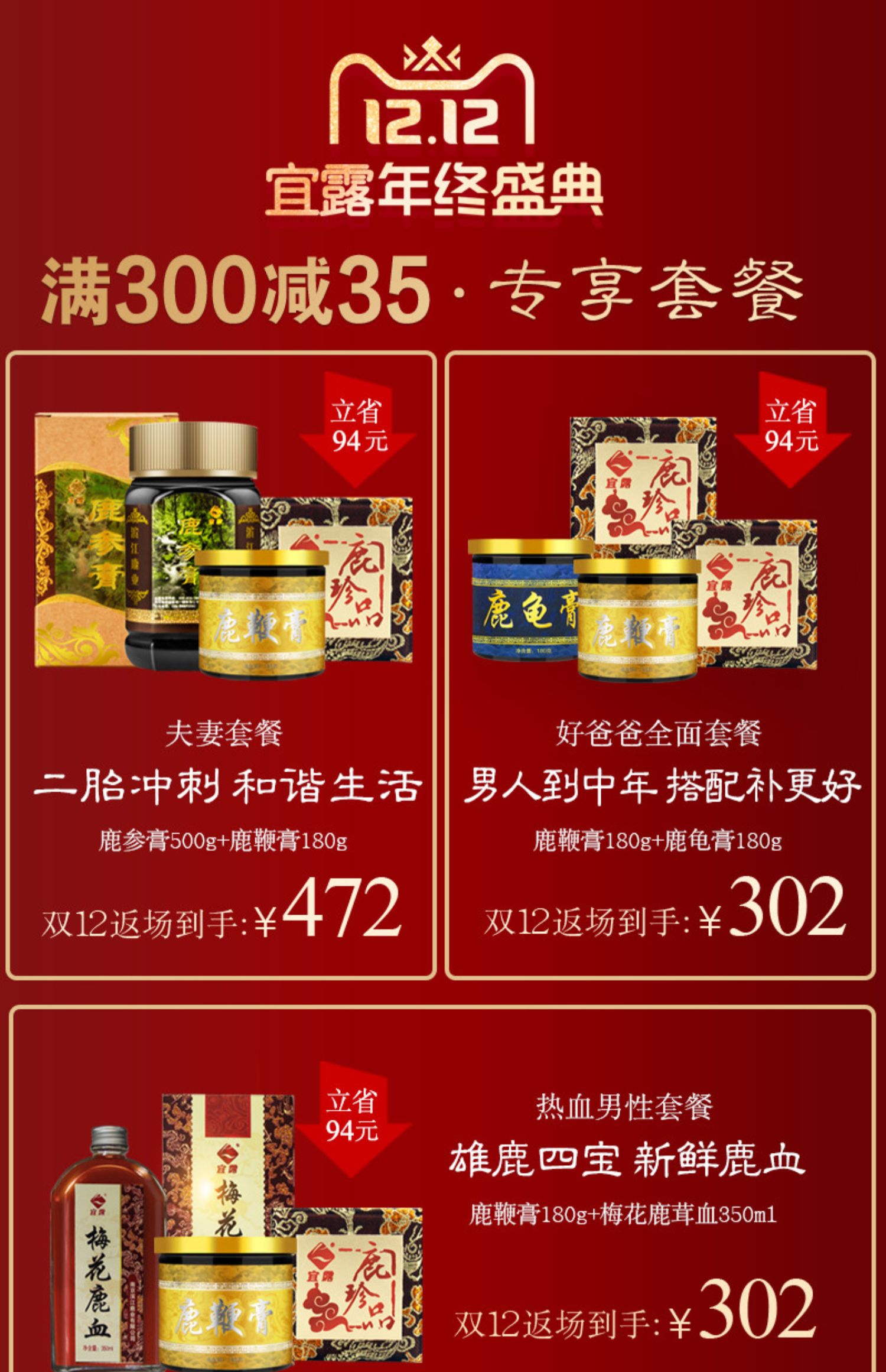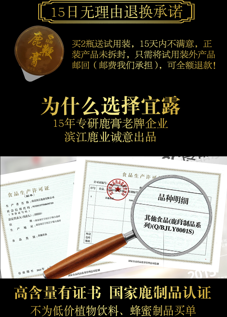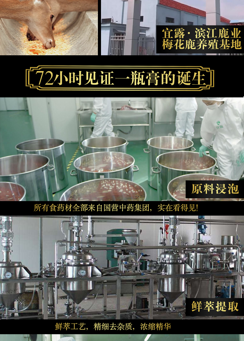 优选雄鹿三宝配方,升级新鲜萃取浓缩不同于其他膏方老牌鹿场直销,鲜鹿鞭保真,坚守鹿场新鲜萃取原料,科学配比,高纯度易吸收冲服都可以一天一勺简单方便从此重振男人雄风只做硬男人!
