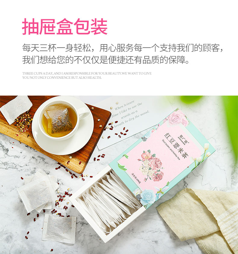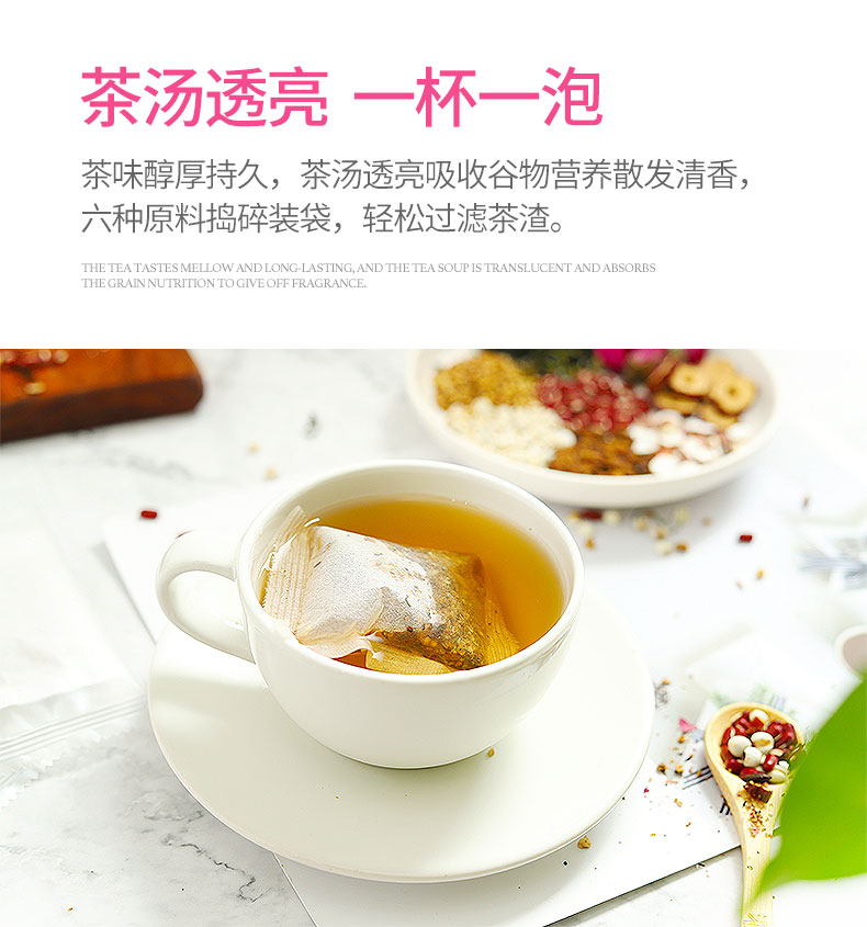 盒装红豆薏米茶,精选六种食材搭配而成,低温烘培,茶味醇厚持久,调节身体,赶走湿胖,携带方便,即泡即饮,老少皆宜,强身养颜。