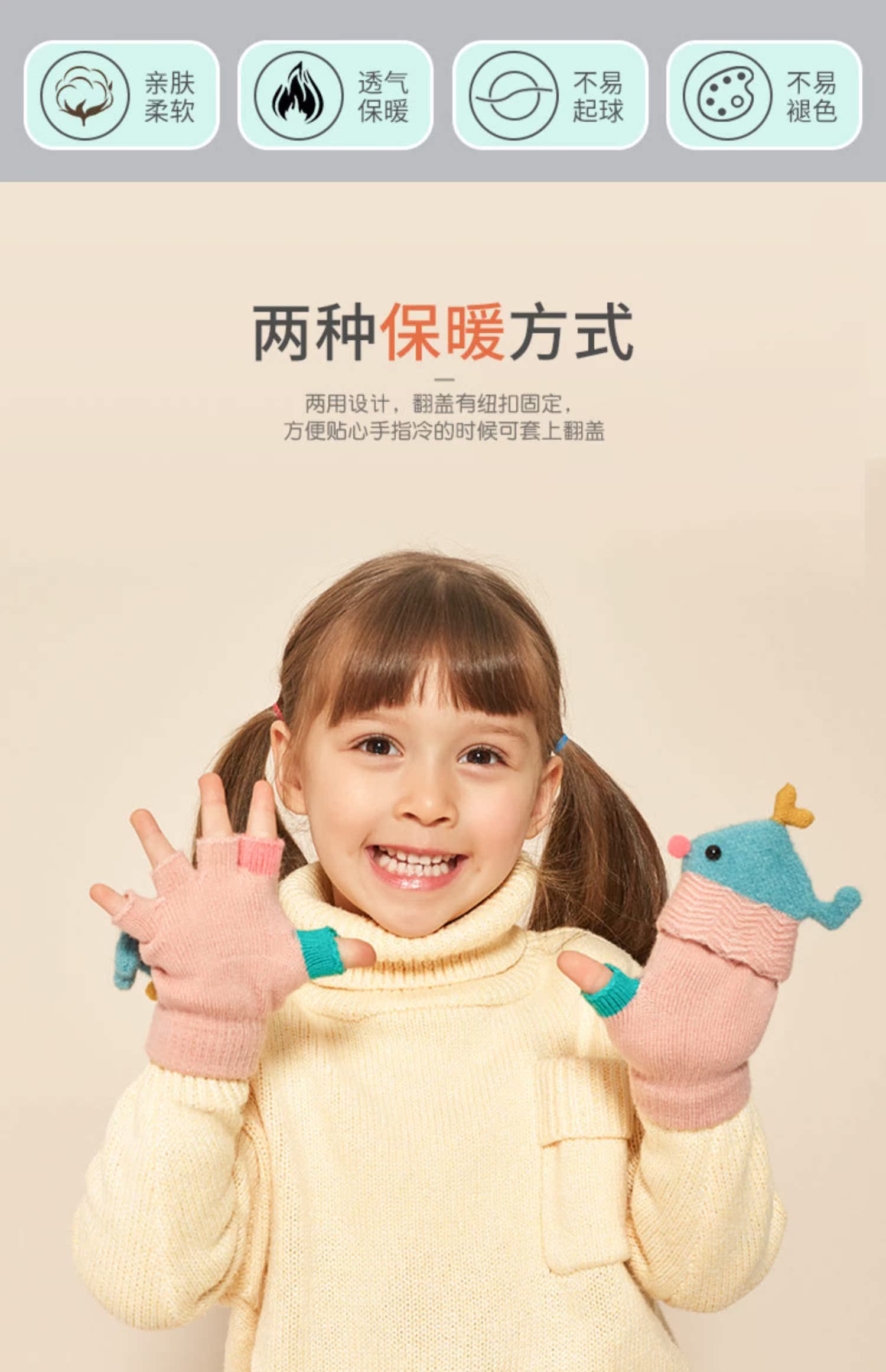 【寒流来袭,保暖手套】精心针织工艺,柔软舒适,亲肤保暖,翻盖半指设计,方便写字、工作、玩耍,手指更灵活,这个冬天宝宝有它就够啦!【赠运费险】