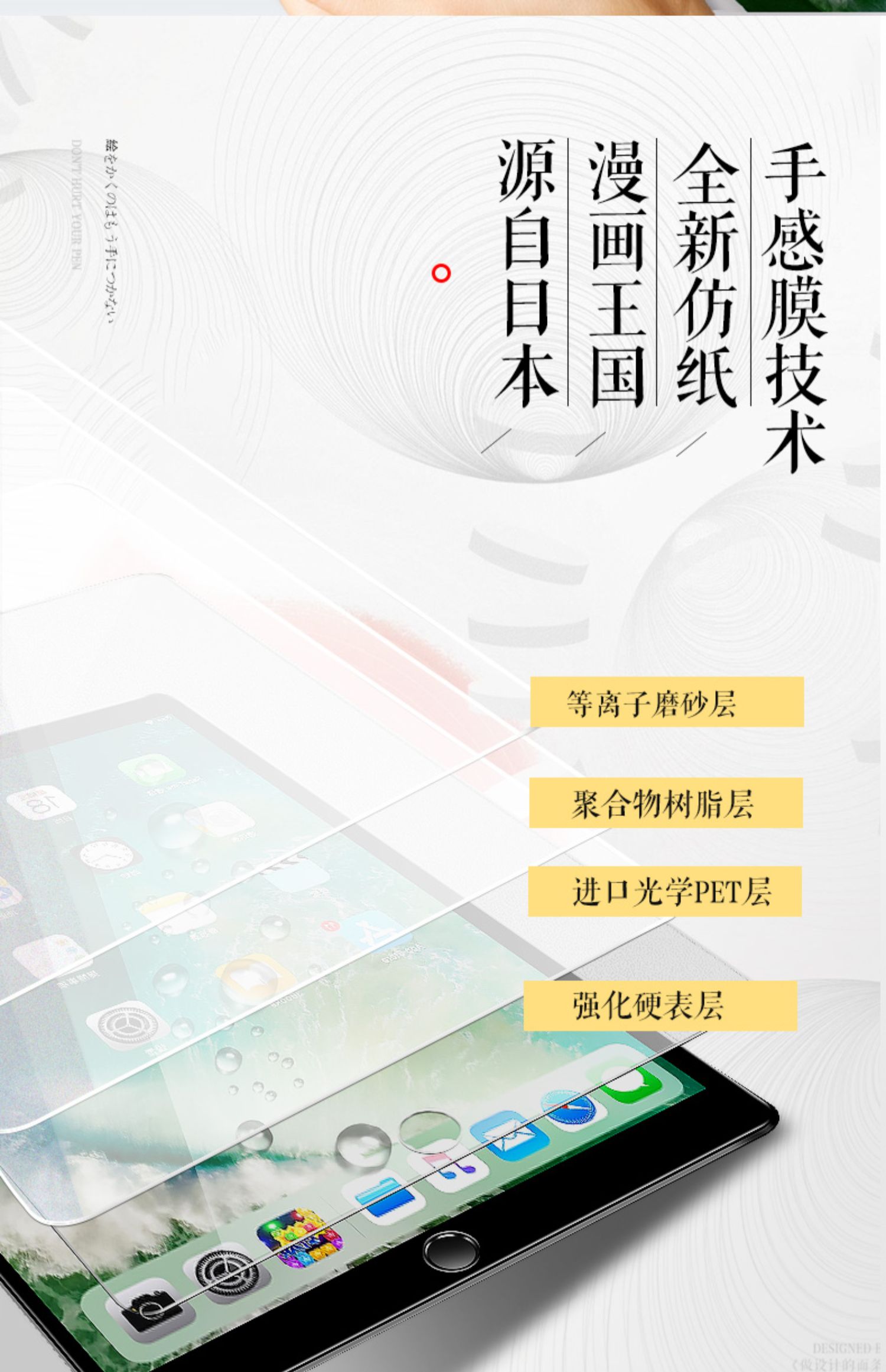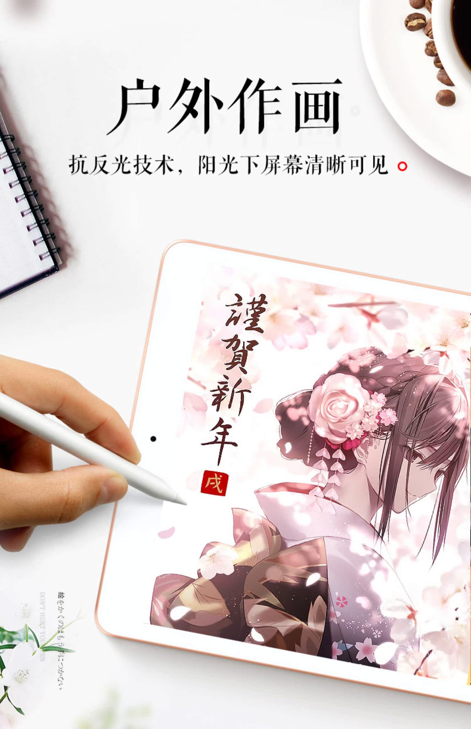 ipad专业类纸,膜磨砂日本苹果平板贴模,素描彩铅绘画耐擦易上铅,纸质强韧,180度平摊,锁线不掉,绘画涂鸦更方便~赠运费险。