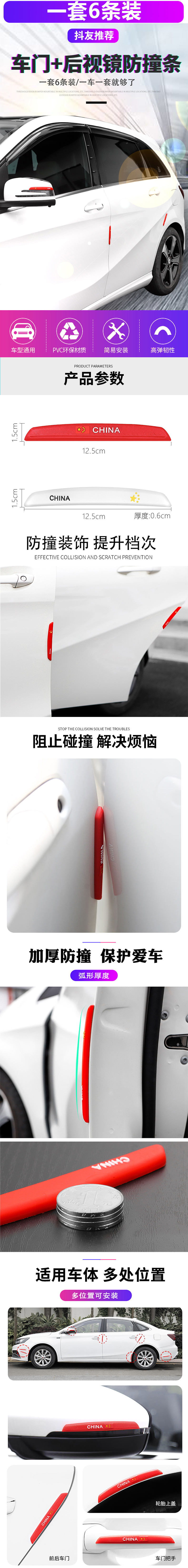 【6条装】透明隐形,通用车型,保护车漆,软加厚,安装不影响颜值,防刮耐磨,汽车车门以及后视镜均可用,保护爱车