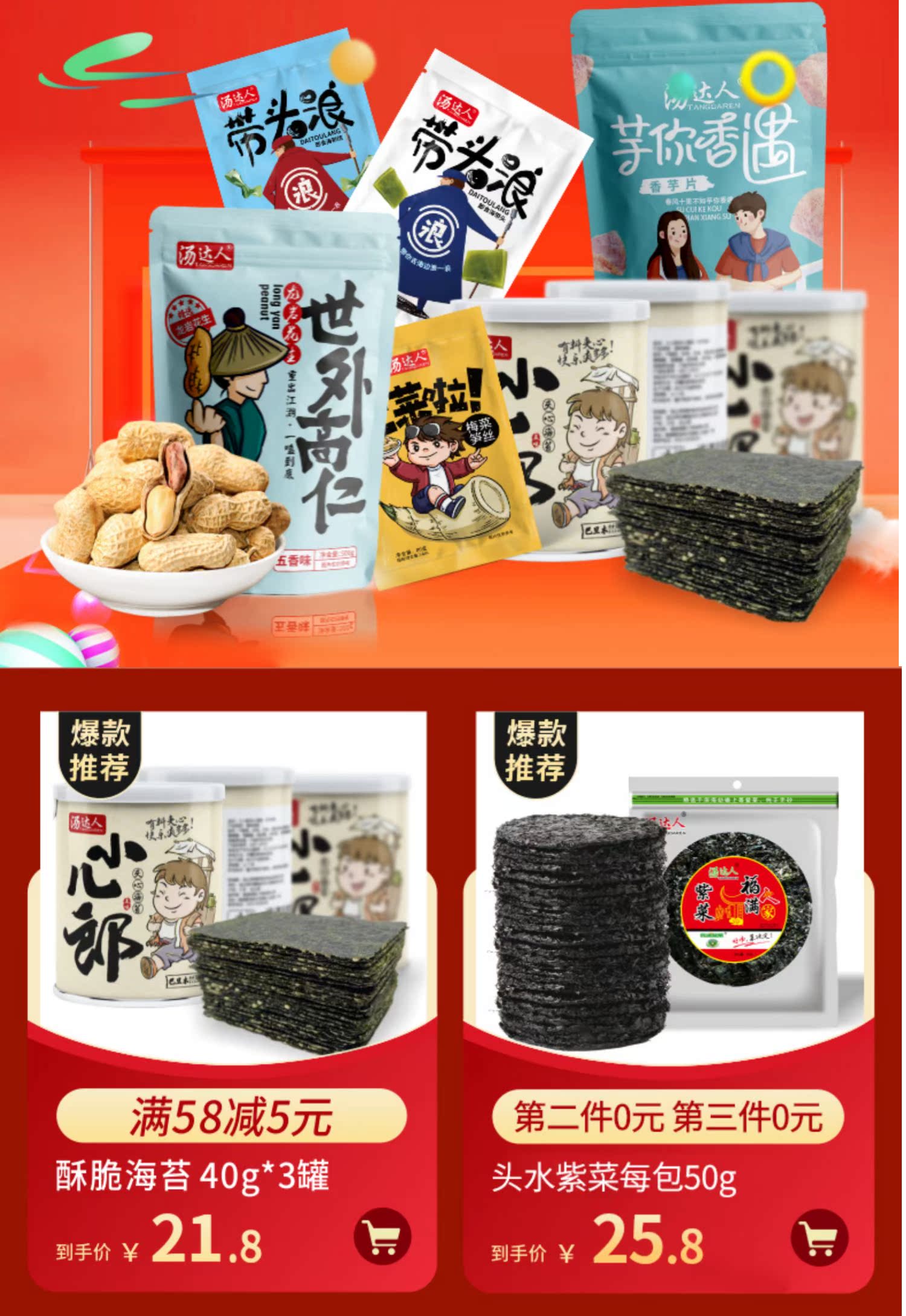 【拍3件,第二件三件0元】汤达人紫菜