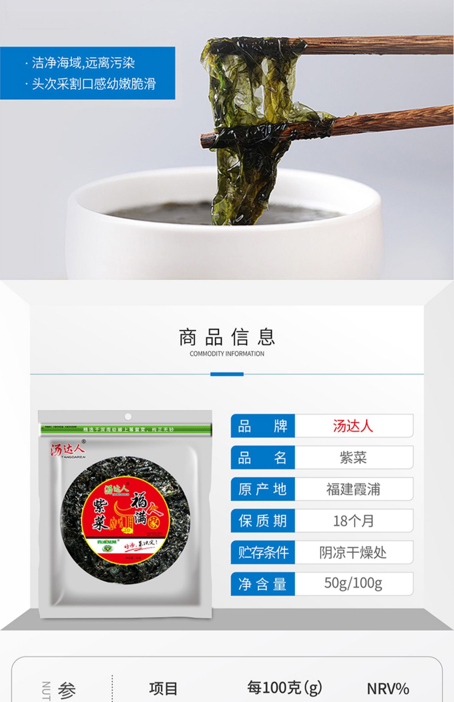 【拍三份,第二份0元,第三份0元】东山紫菜开袋即食,新鲜日期,收割头水紫菜,不加色素和防腐剂,闻起来有一股特有的清香,新鲜海产,