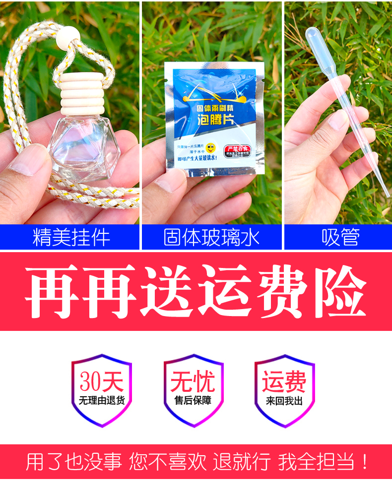 【买一送一】发2瓶,发2瓶,发2瓶啦! 好用不贵,汽车香水补充液,买就送香水吊坠, 泡腾片,吸管礼物超多,多种香味, 随意选择,香气持久 清爽自然 提神醒脑 , 家车两用,有车一族的理想选择。