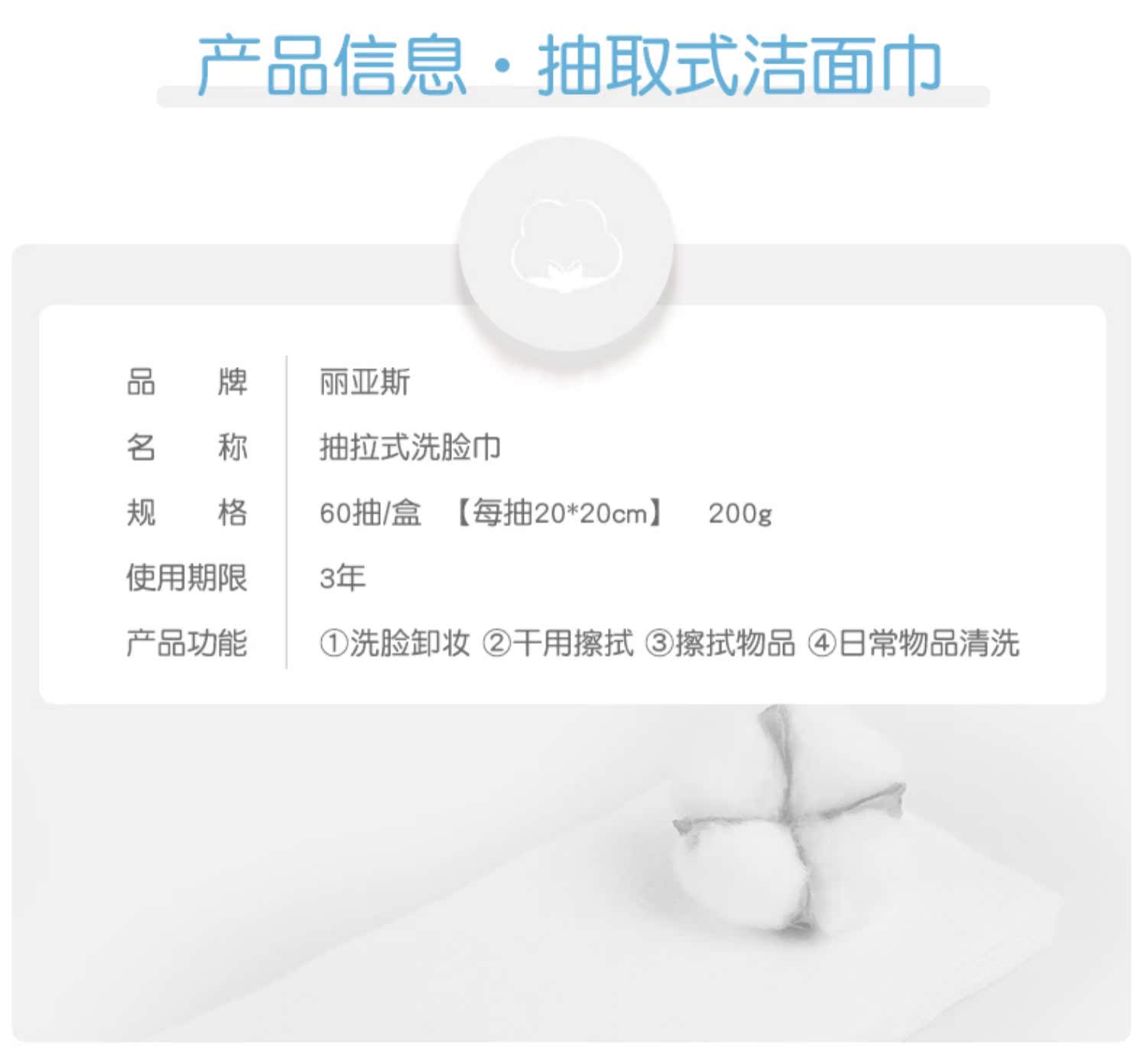 【买二送一】丽亚斯纯棉洗脸巾,一次性抽取式,无菌方便,柔软洁净,纯棉加厚,干湿两用,无荧光剂,价格美丽,秒起来~
